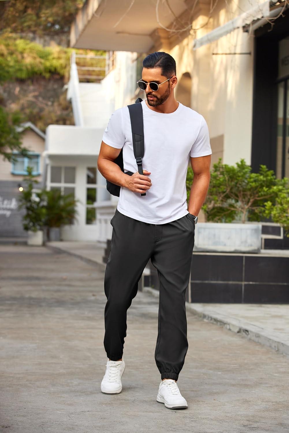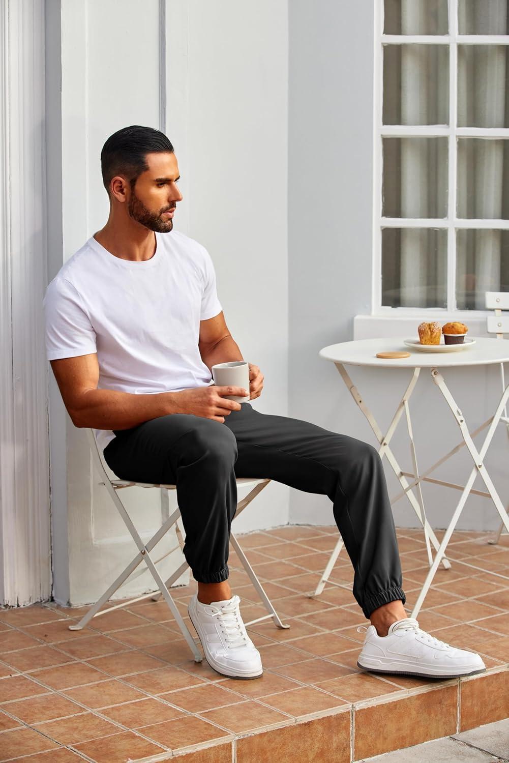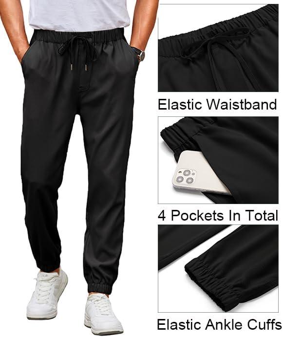 COOFANDY Mens Joggers Pants Regular Fit Casual Pants Lightweight Elastic Waistband Pants with Pockets(Black)