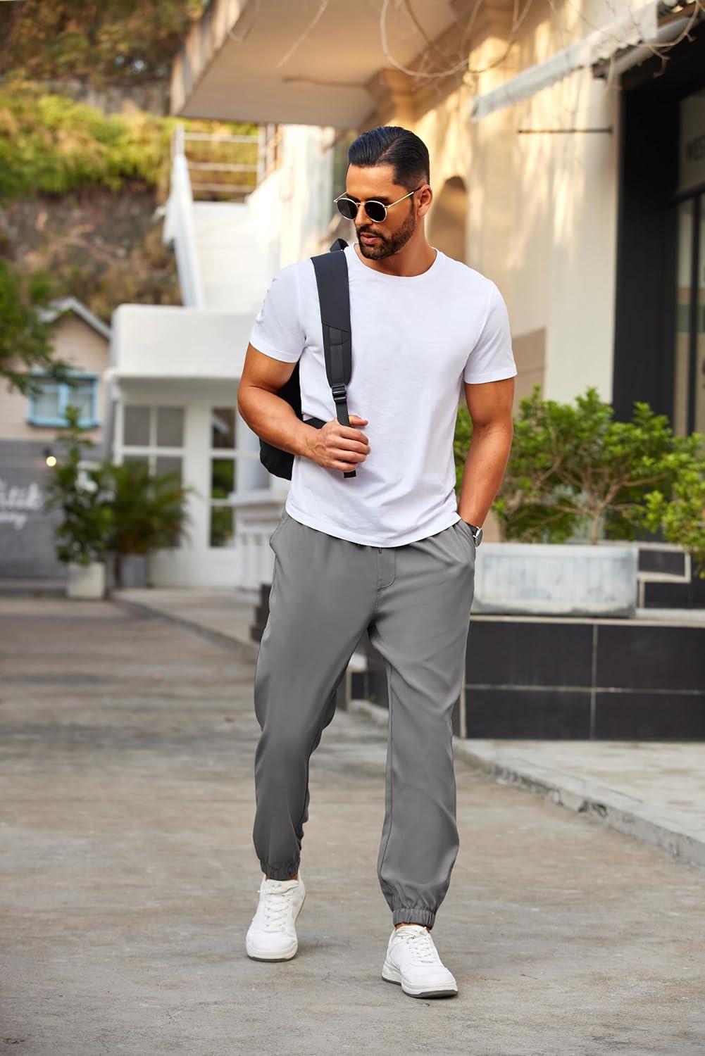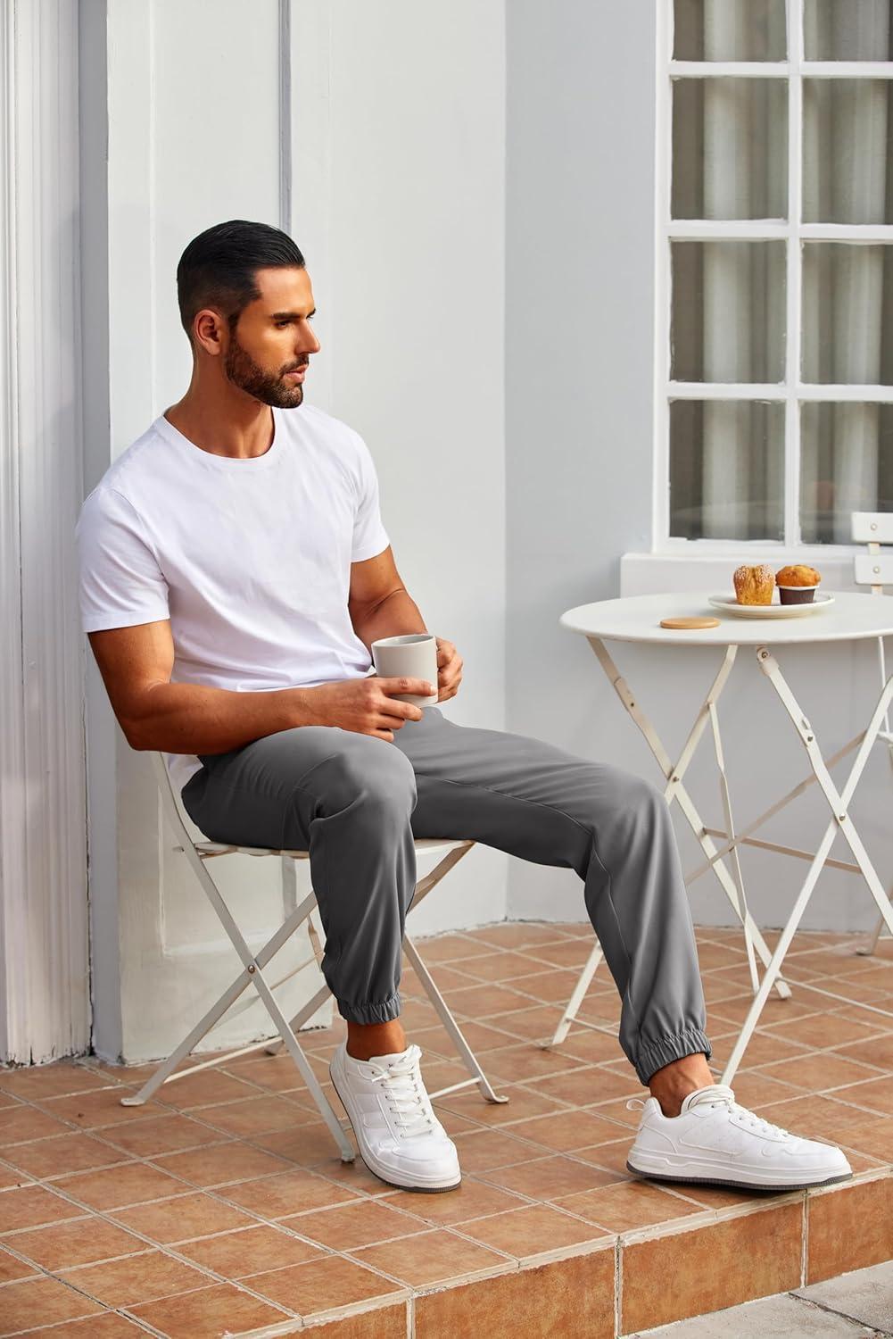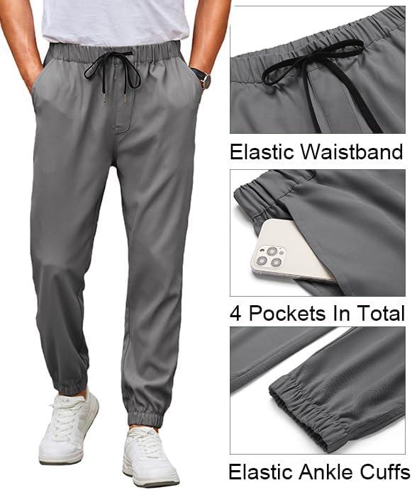 COOFANDY Mens Joggers Pants Regular Fit Casual Pants Lightweight Elastic Waistband Pants with Pockets(Dark Grey)