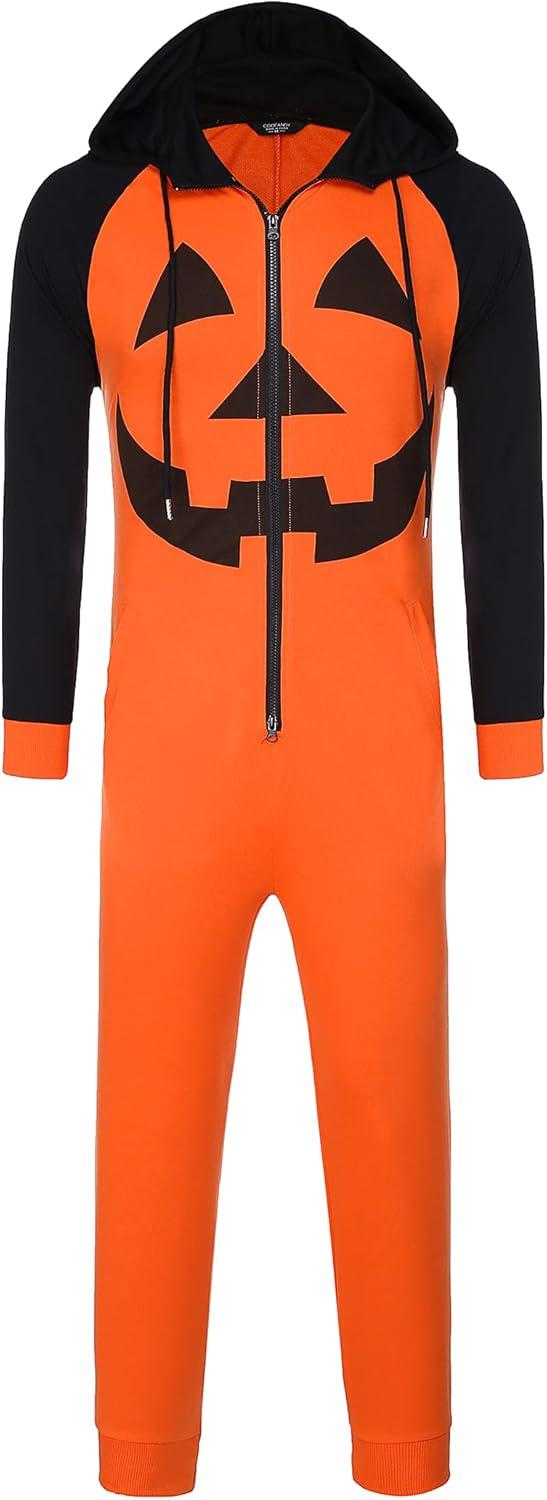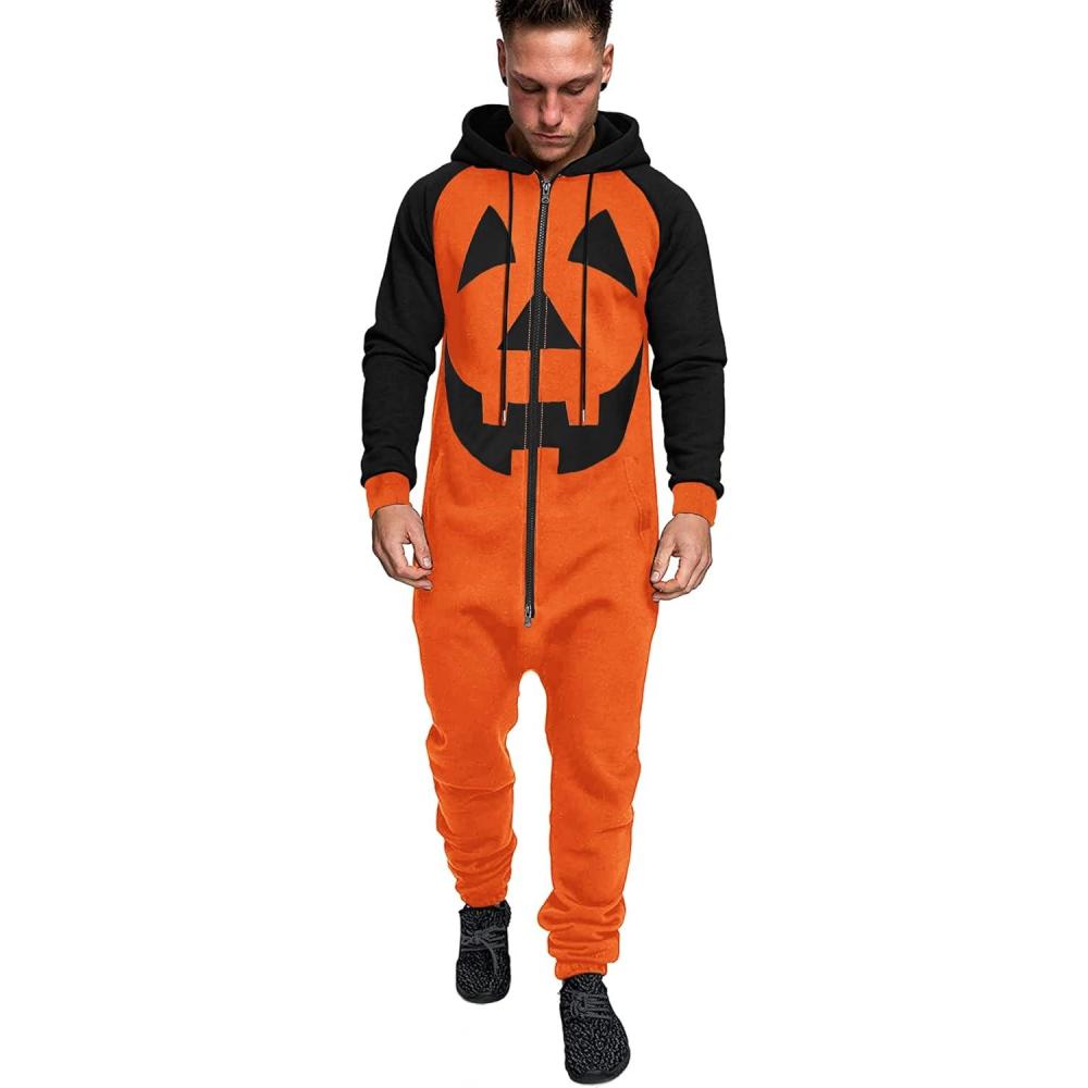 COOFANDY Mens Jumpsuit Onesie Rompers Drawtsring Hooded Full Zip One Piece Tracksuit with Pockets(Orange Pumpkin)