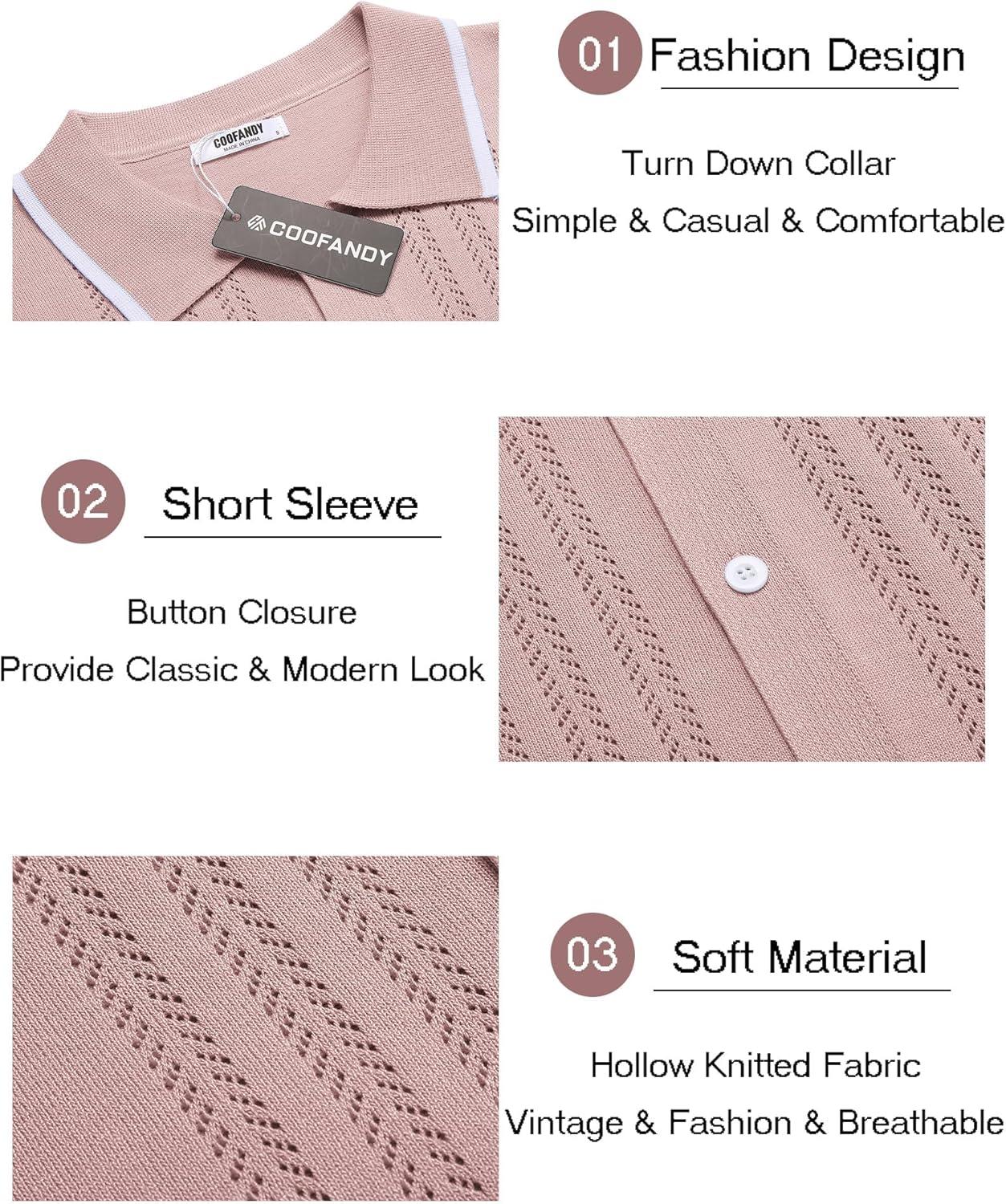 Be the first to review “COOFANDY Men’s Knit Button Down Shirt Vintage Short Sleeve Polo Shirts Casual Beach Tops(Light Pink)”