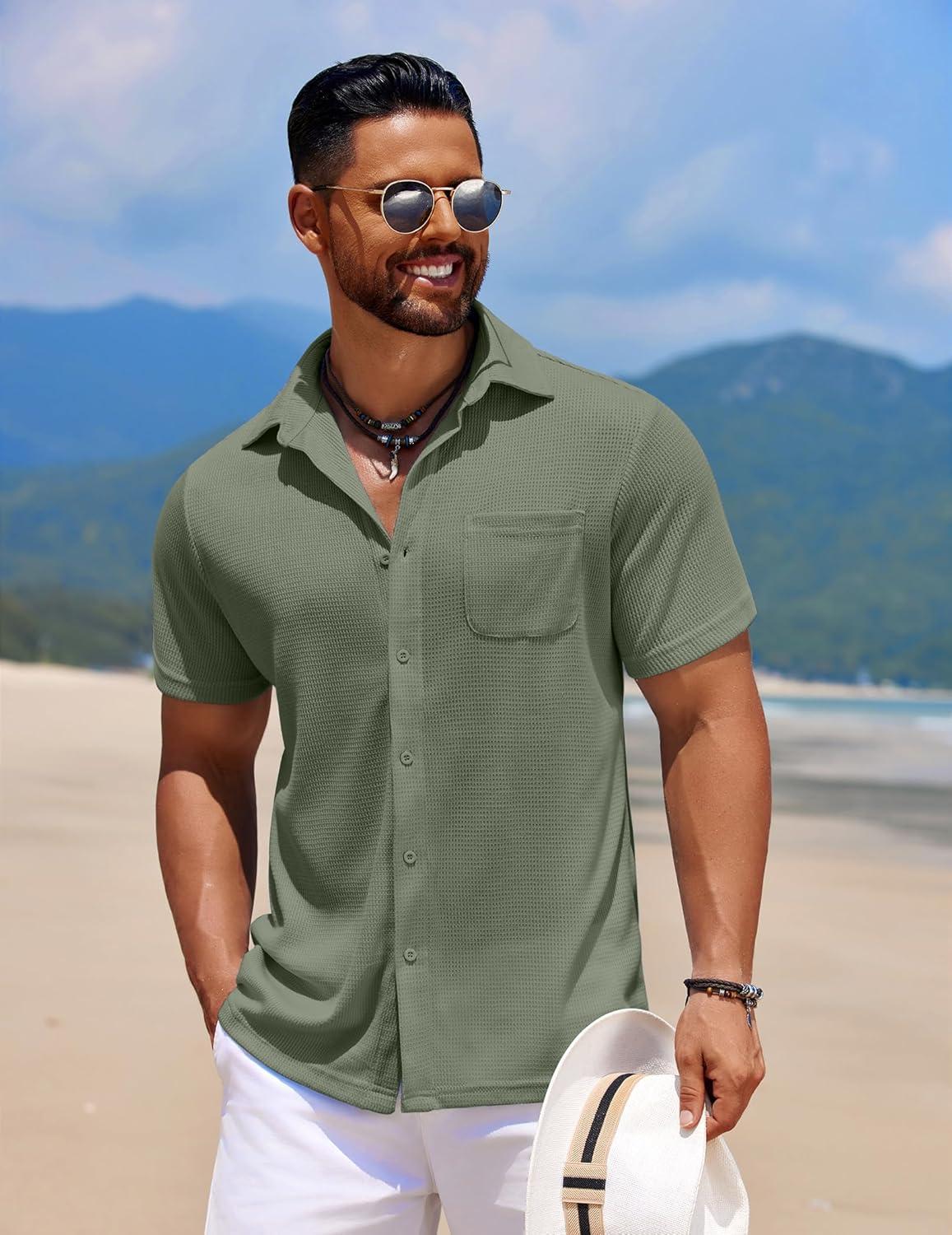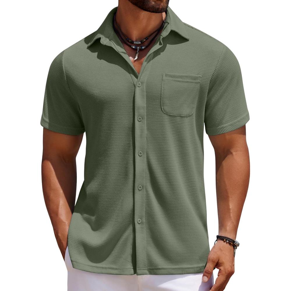 Discover the latest COOFANDY Men’s Knit Button Down Shirts Casual Short Sleeve Polo Shirt Summer Beach Shirts with Pocket(Chive) from and take advantage of our limited-time introductory offer.