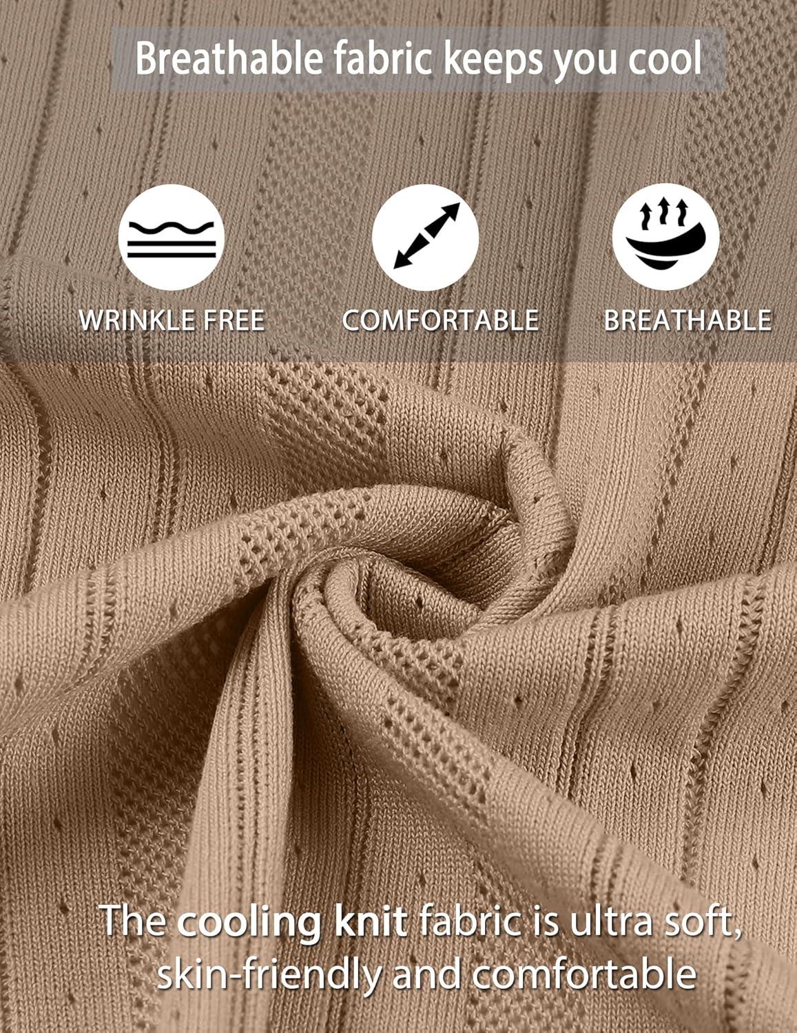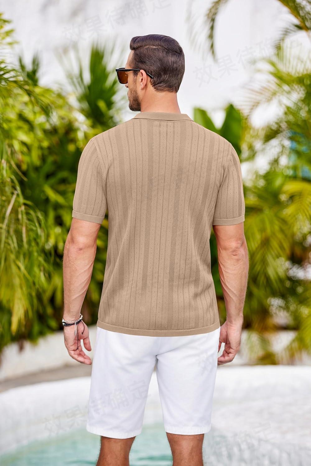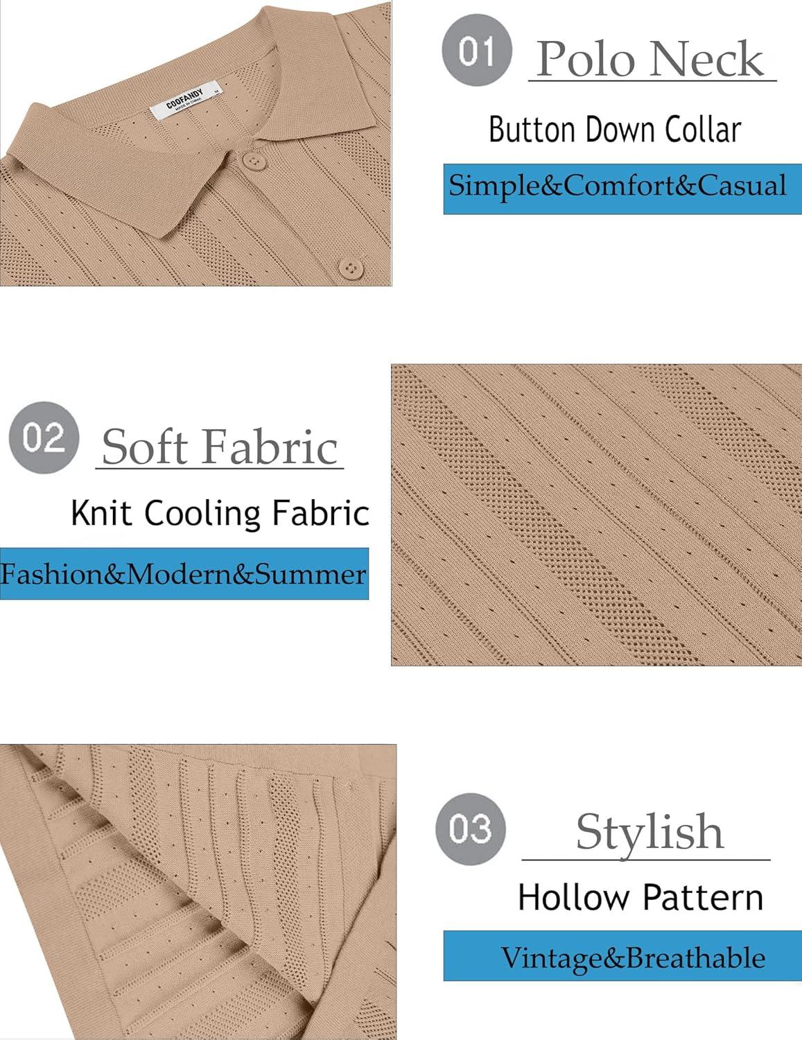 COOFANDY Mens Knit Button Down Shirts Crochet Polo Shirts Vintage Short Sleeve Textured Shirts Summer Beach Tops(Khaki)