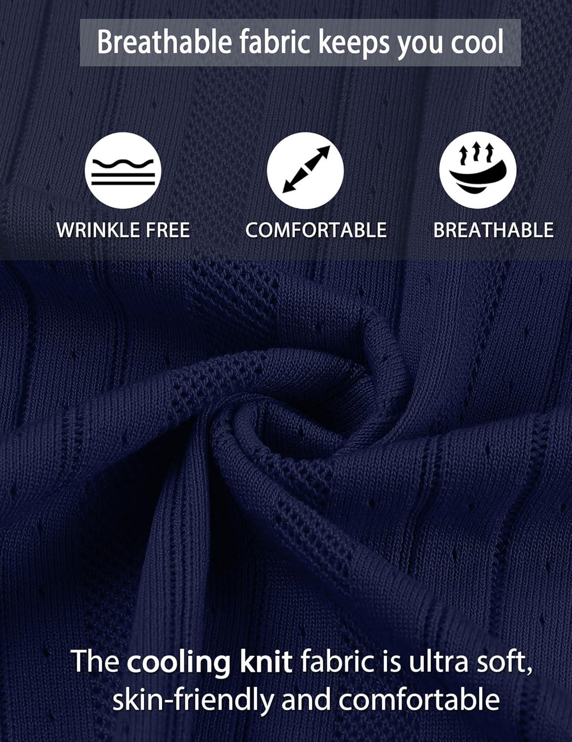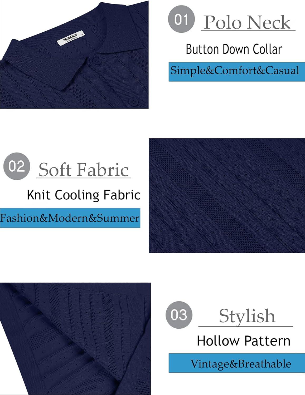 COOFANDY Mens Knit Button Down Shirts Crochet Polo Shirts Vintage Short Sleeve Textured Shirts Summer Beach Tops(Navy Blue)