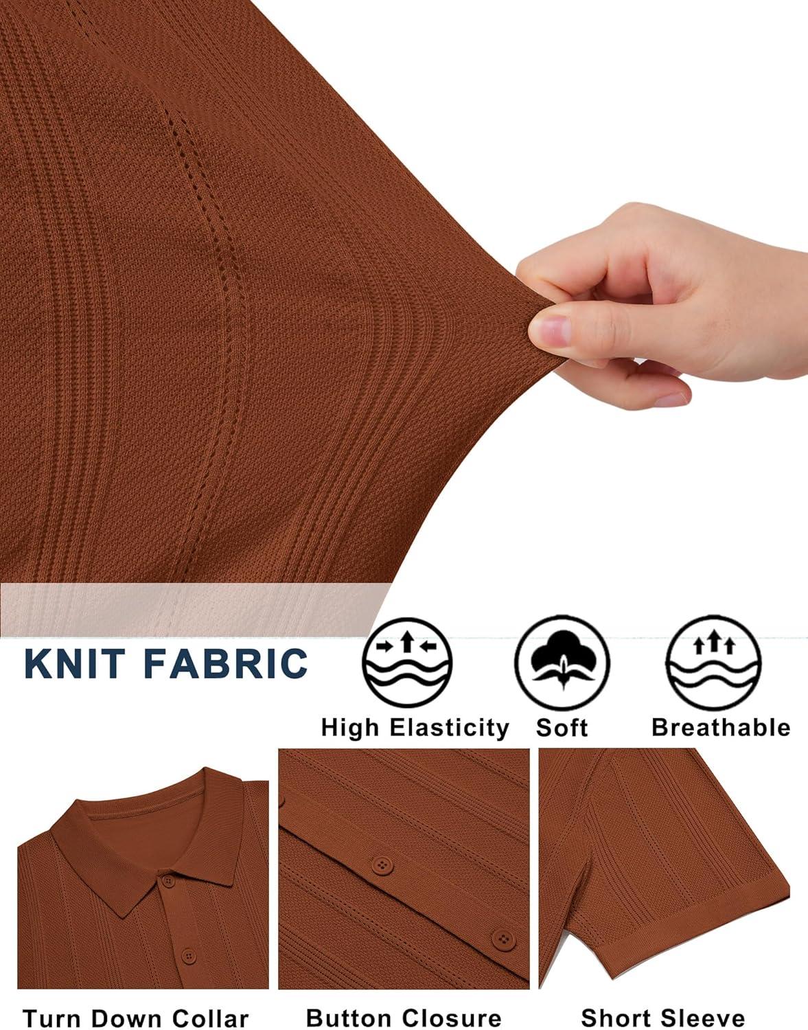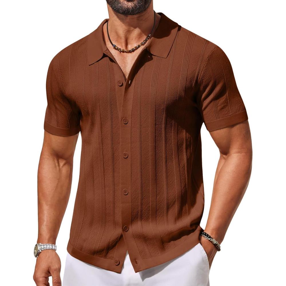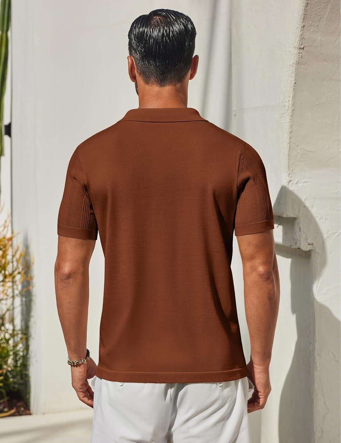 COOFANDY Men's Knit Button Down Shirts Short Sleeve Polo Shirt Casual Vacation Summer Beach Shirts(Light Brown)
