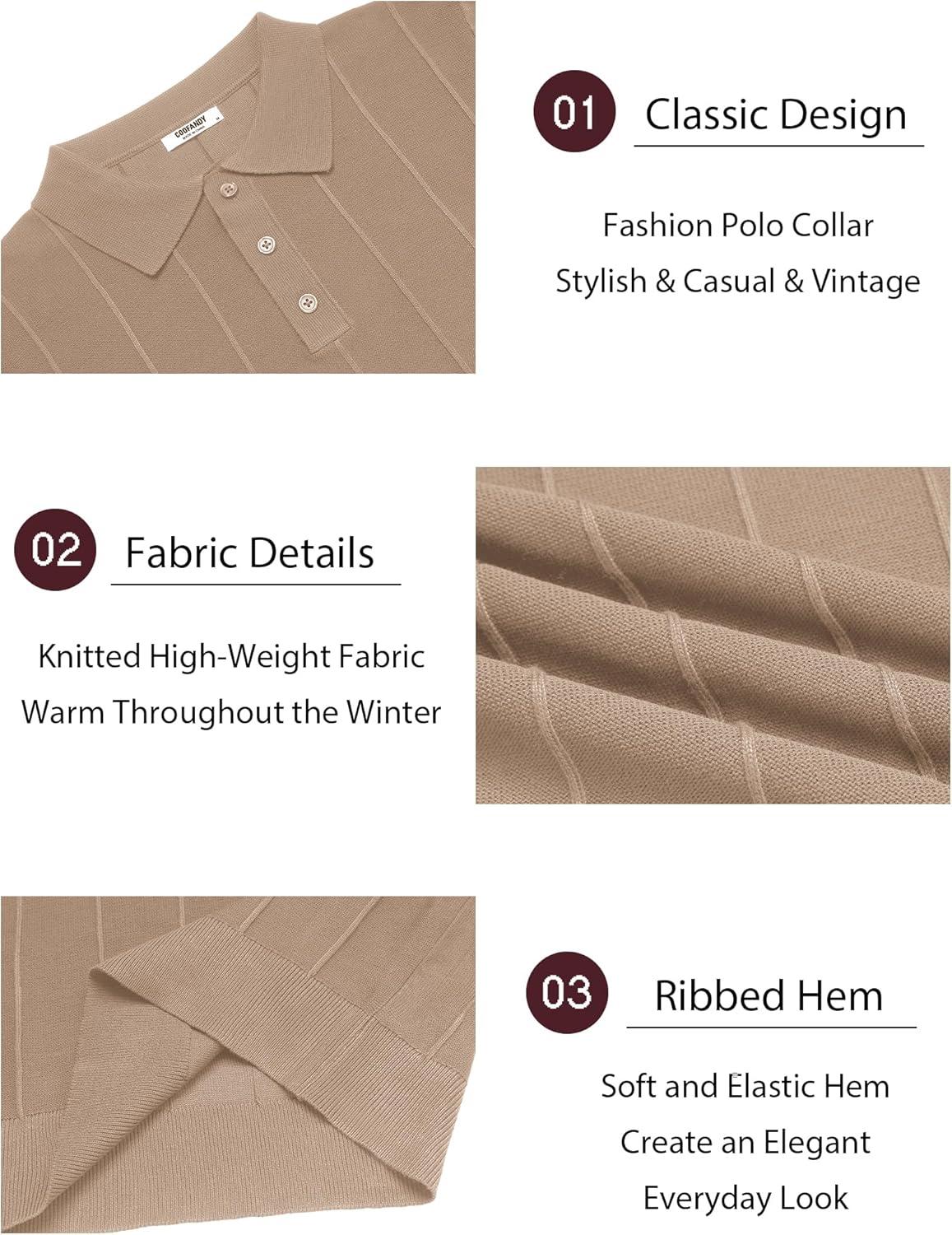 COOFANDY Mens Knit Long Sleeve Polo Sweater Business Casual Collared Golf Sweaters Ribbed Textured Activewear Polos(Khaki)