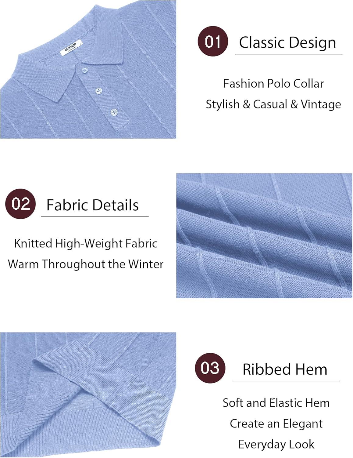 COOFANDY Mens Knit Long Sleeve Polo Sweater Business Casual Collared Golf Sweaters Ribbed Textured Activewear Polos(Light Blue)
