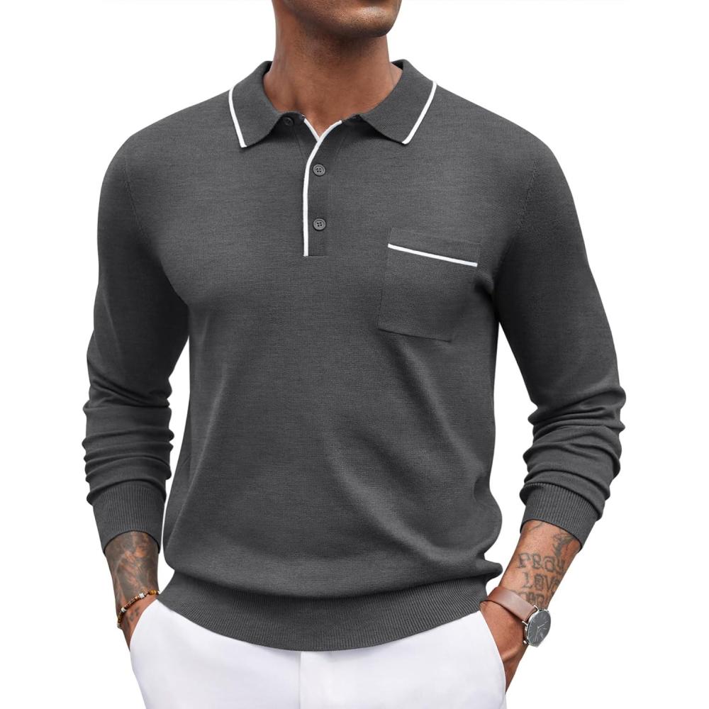 COOFANDY Mens Knit Polo Long Sleeve Collared Sweater Polo Business Casual Polos with Pocket(Dark Gray)