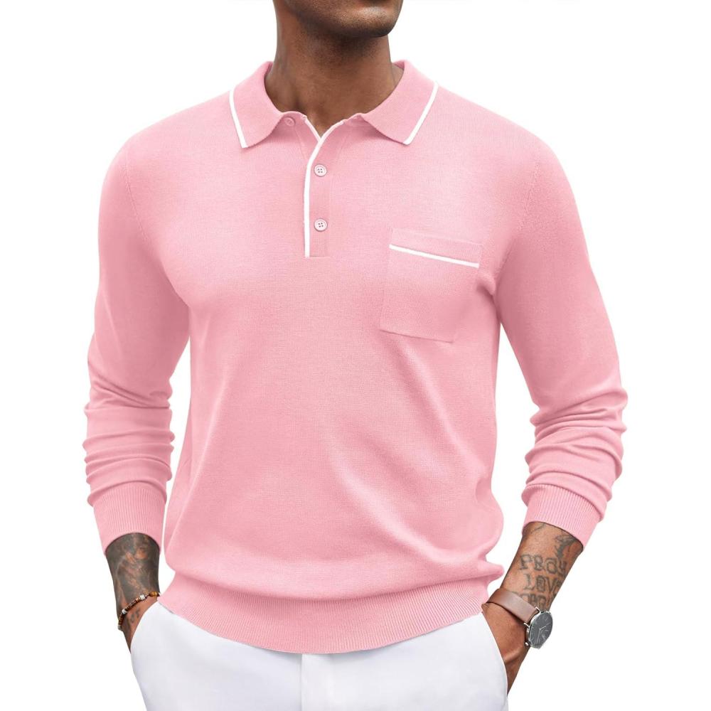 COOFANDY Mens Knit Polo Long Sleeve Collared Sweater Polo Business Casual Polos with Pocket(Dark Pink)