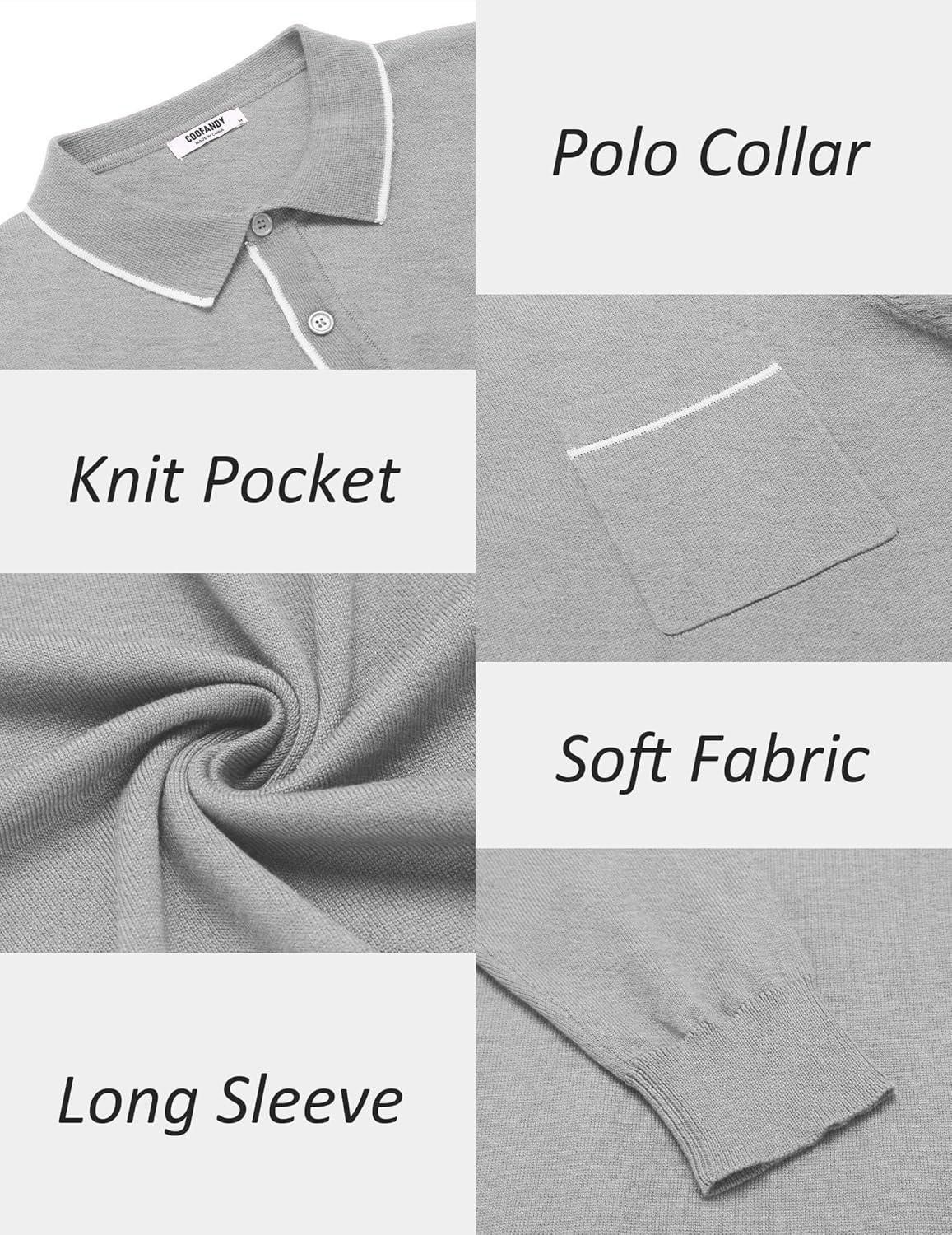Get your hands on our exclusive COOFANDY Mens Knit Polo Long Sleeve Collared Sweater Polo Business Casual Polos with Pocket(Light Gray) collection, now at a discounted price.