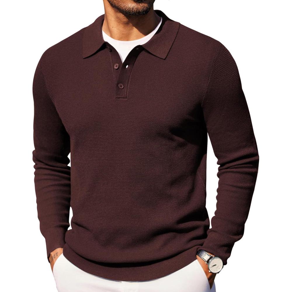 COOFANDY Men's Knit Polo Long Sleeve Sweaters Collared Polo Sweater Casual Dress Pullover Fashion Golf Sweaters(Brown)