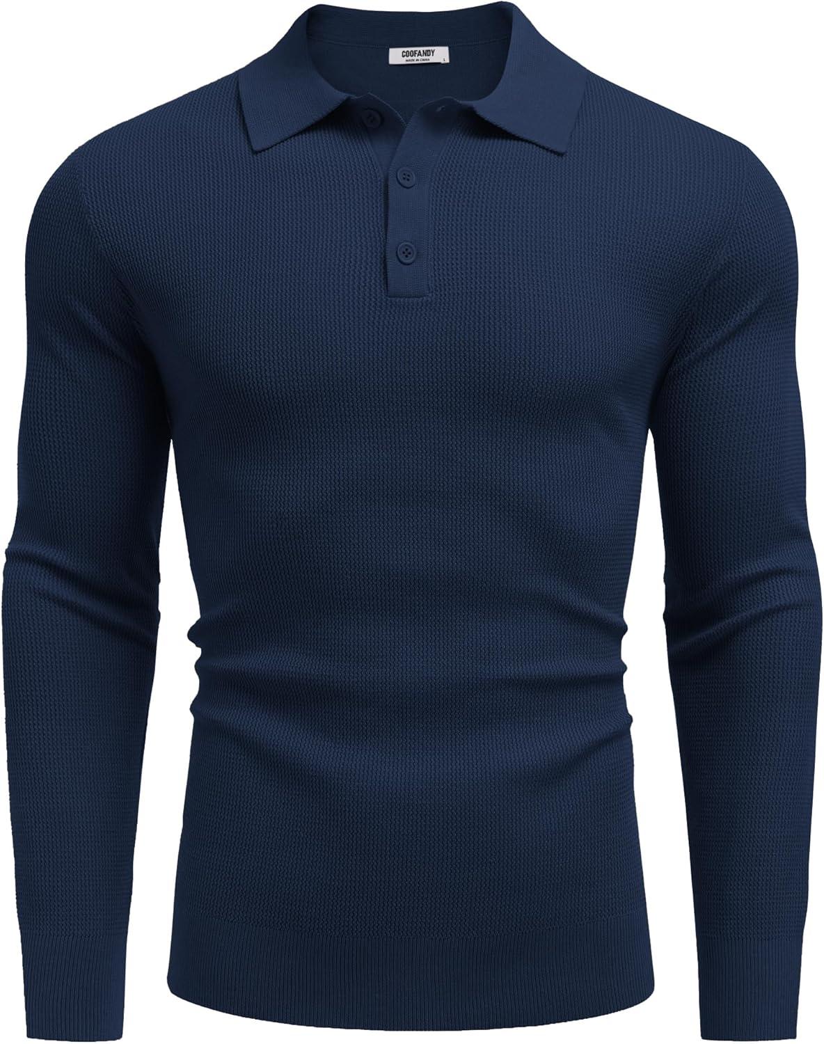 COOFANDY Men's Knit Polo Long Sleeve Sweaters Collared Polo Sweater Casual Dress Pullover Fashion Golf Sweaters(Navy Blue)