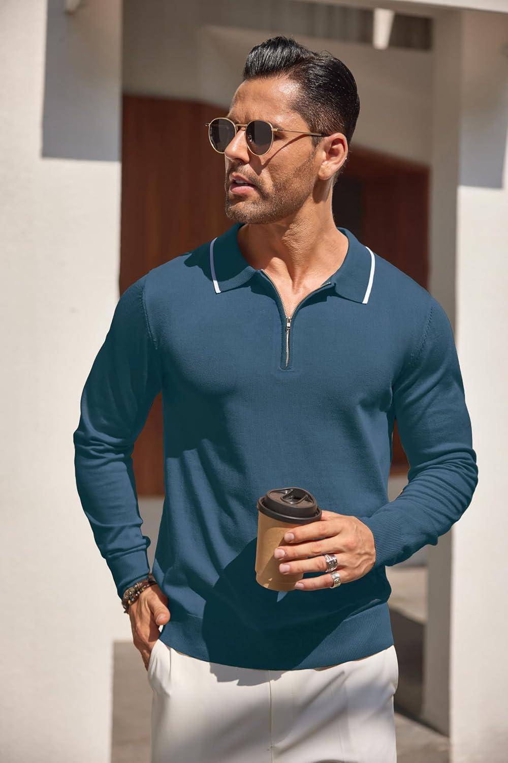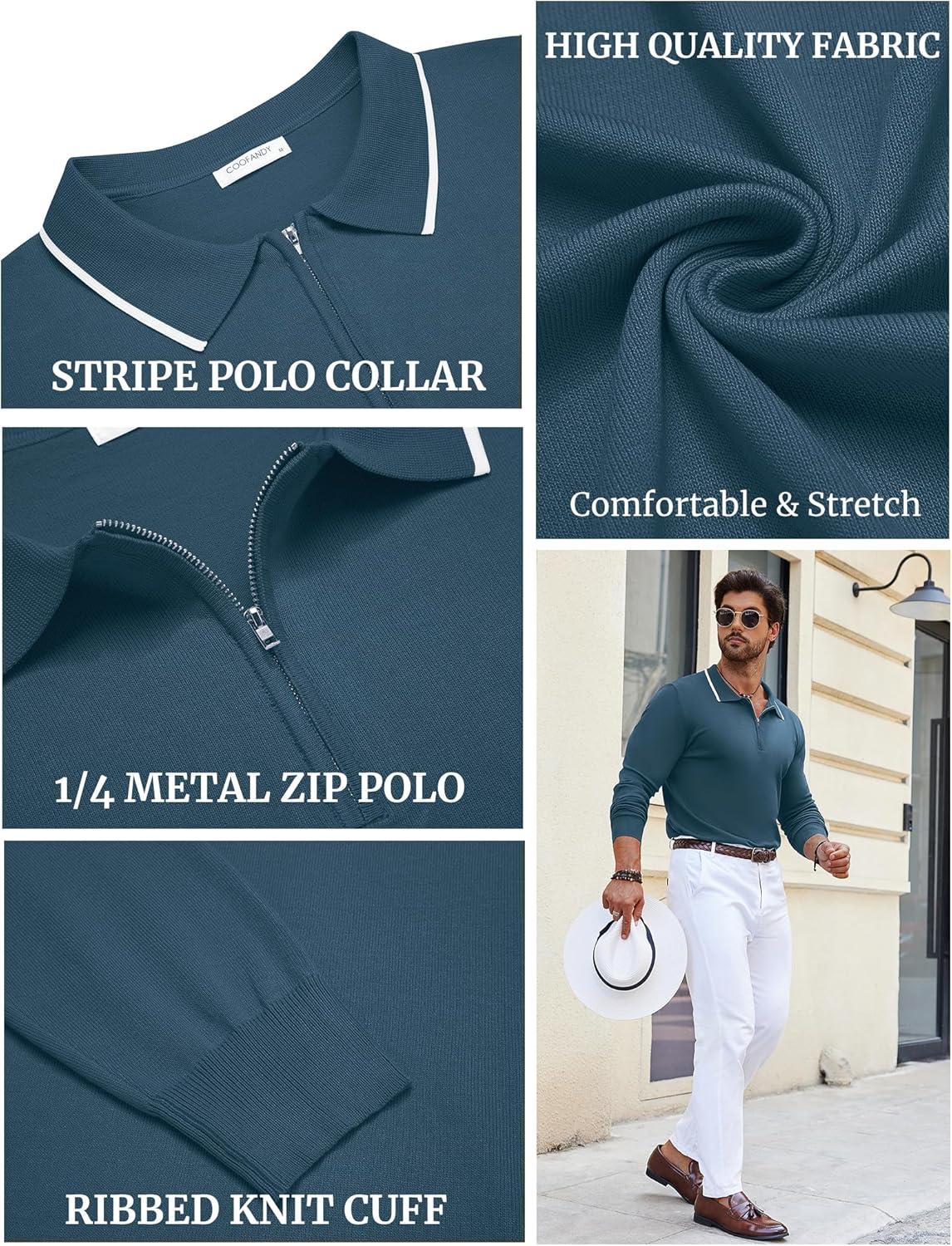 Don’t miss out on our limited-time offer: buy COOFANDY Men’s Knit Polo Shirt Long Sleeve Quarter Zip Polo Sweater Casual Golf Shirts Vintage Striped Collar Polo(Dark Blue), get {accessory} free!