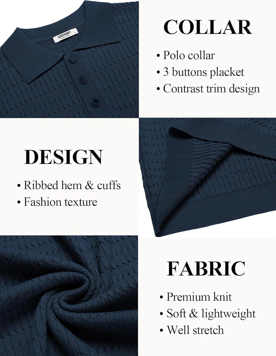 Don’t break the bank! Get the COOFANDY Mens Knit Polo Shirt Short Sleeve Vintage Textured Casual Golf Shirts Summer Beach Top(Navy Blue) you want at a price you can afford during our markdown sale.