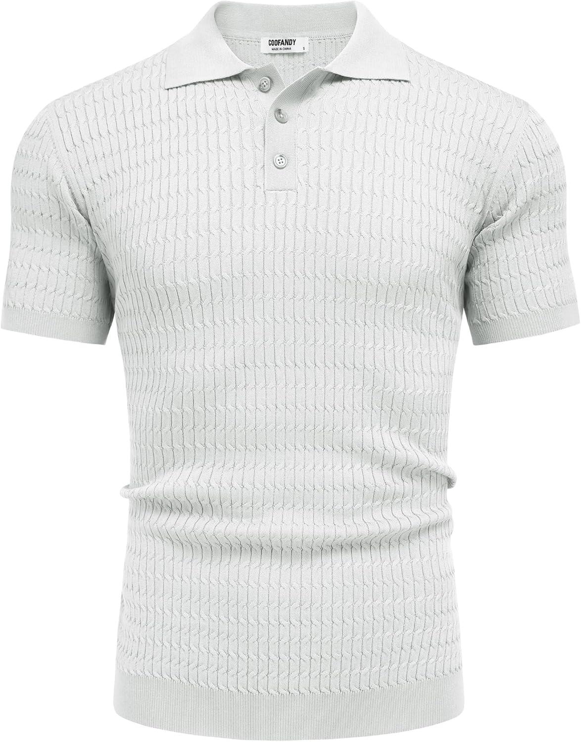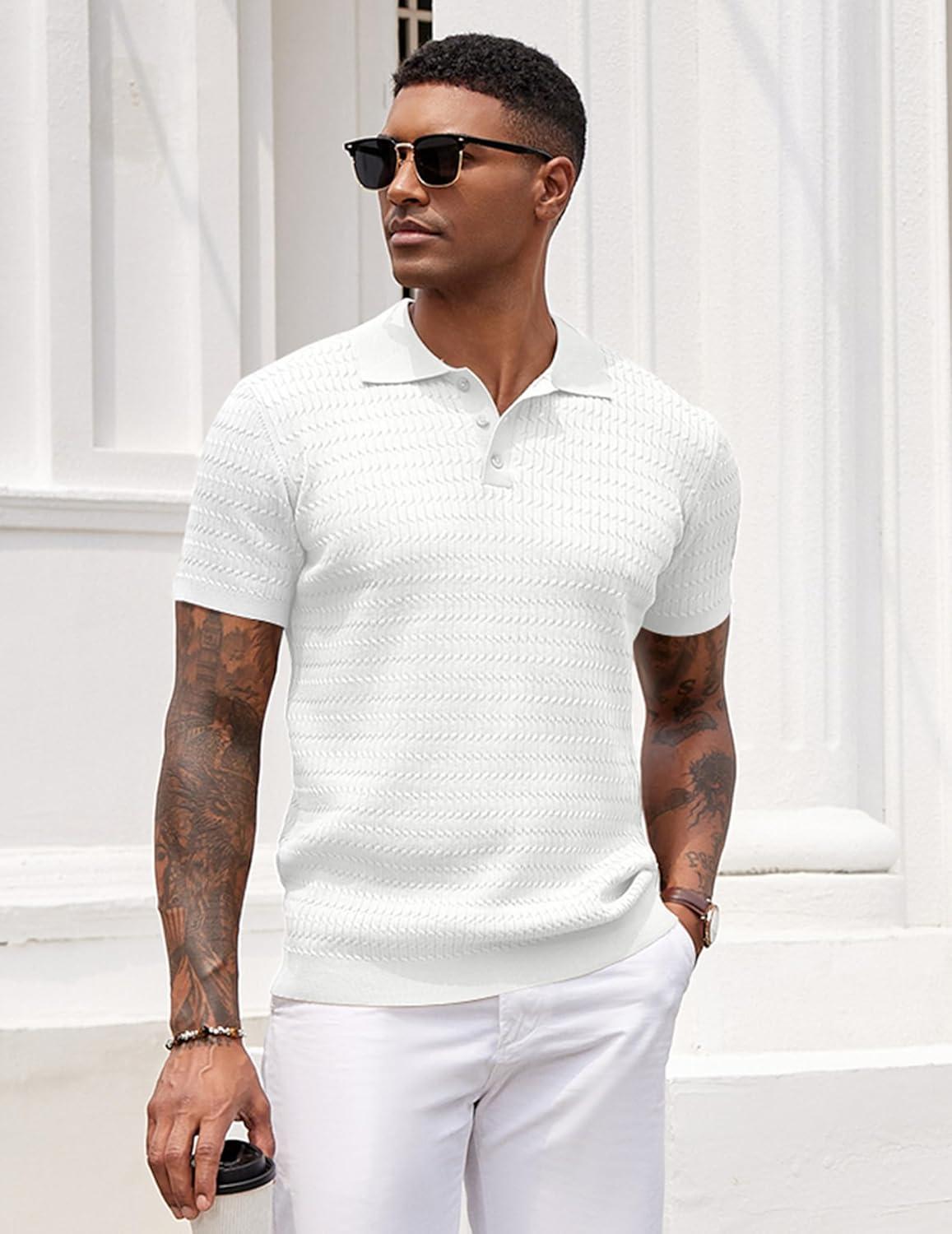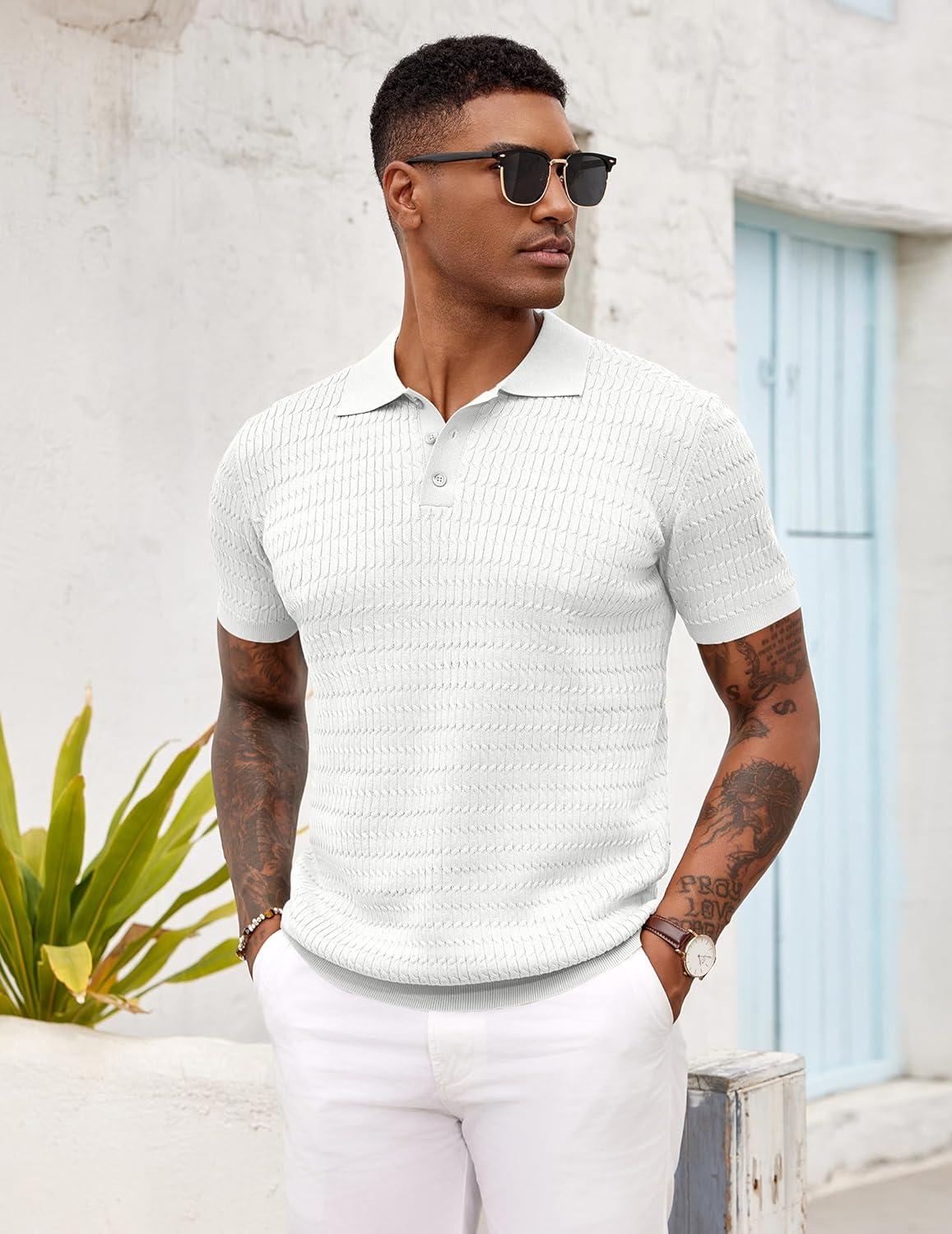 COOFANDY Mens Knit Polo Shirt Short Sleeve Vintage Textured Casual Golf Shirts Summer Beach Top(White)