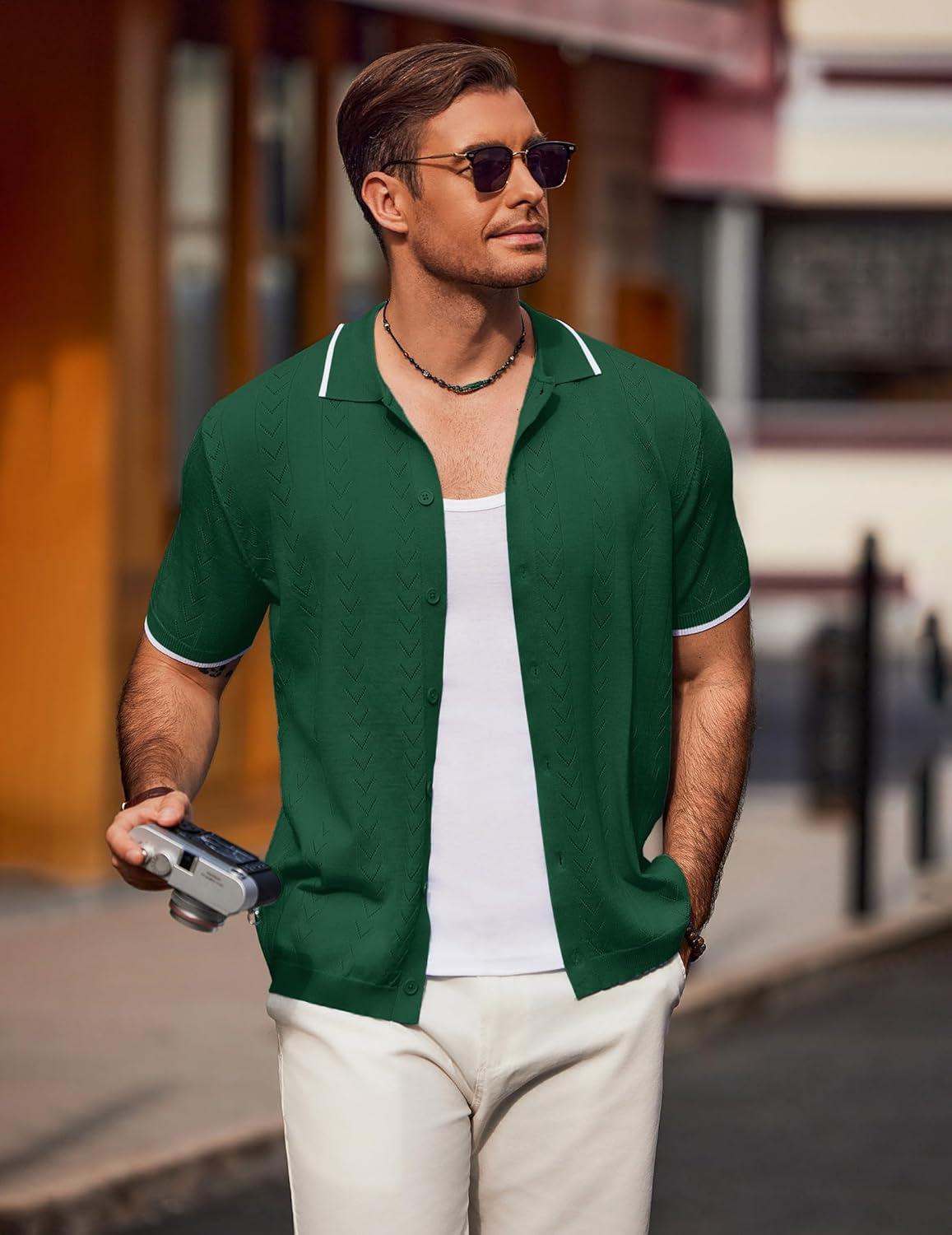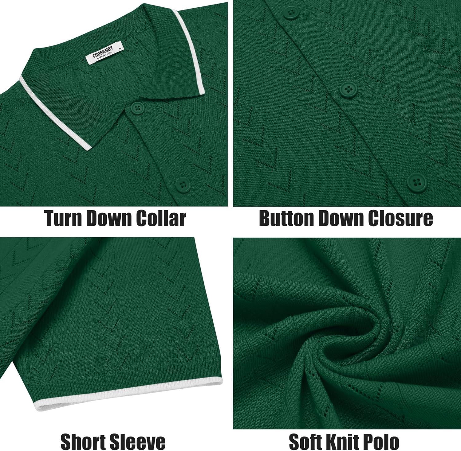 Don’t miss out on our limited-time offer: buy COOFANDY Mens Knit Polo Shirts Button Down Short Sleeve Shirt Summer Casual Beach Vacation Tops(Dark Green), get {accessory} free!