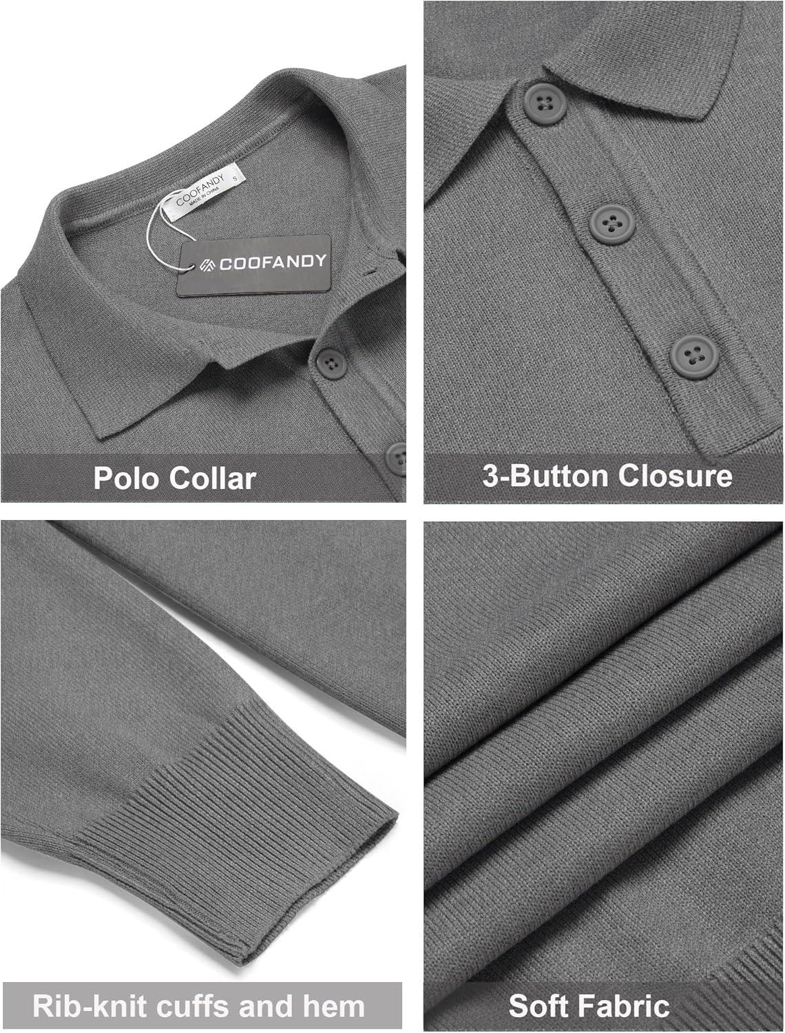 Don’t miss out on our limited-time offer: buy COOFANDY Mens Knit Polo Shirts Casual Long Sleeve Classic Polo Shirts Button Down Golf Shirts(Grey), get {accessory} 50% off!