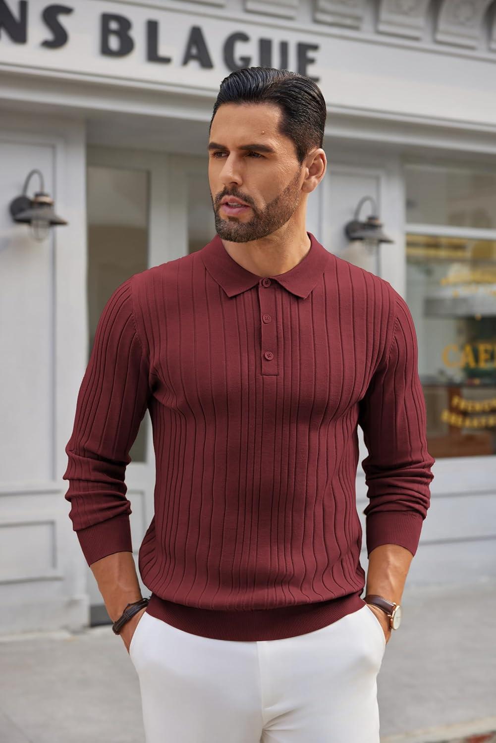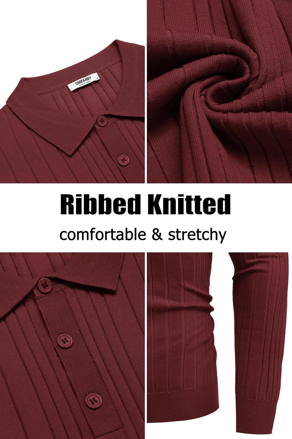 Get up to 60% off on COOFANDY Men’s Knit Polo Shirts Long Sleeve Casual Button Down Ribbed Polo Shirt Fashion Golf Shirts(Wine Red) styles during our winter sale event.