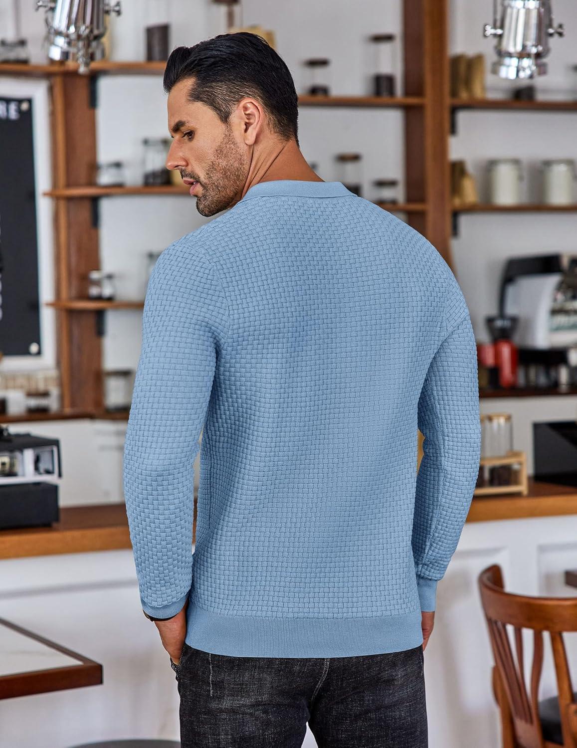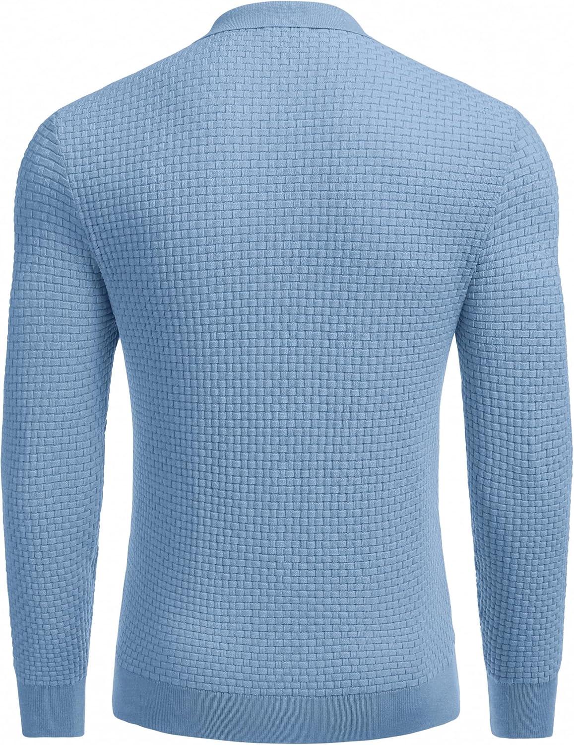 COOFANDY Men's Knit Polo Shirts Long Sleeve Sweater Polo Lightweight Fashion Casual Collared Shirts(Airy Blue)