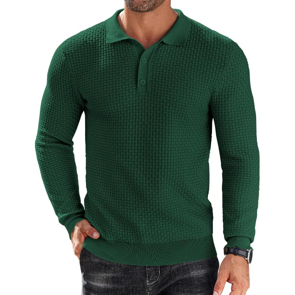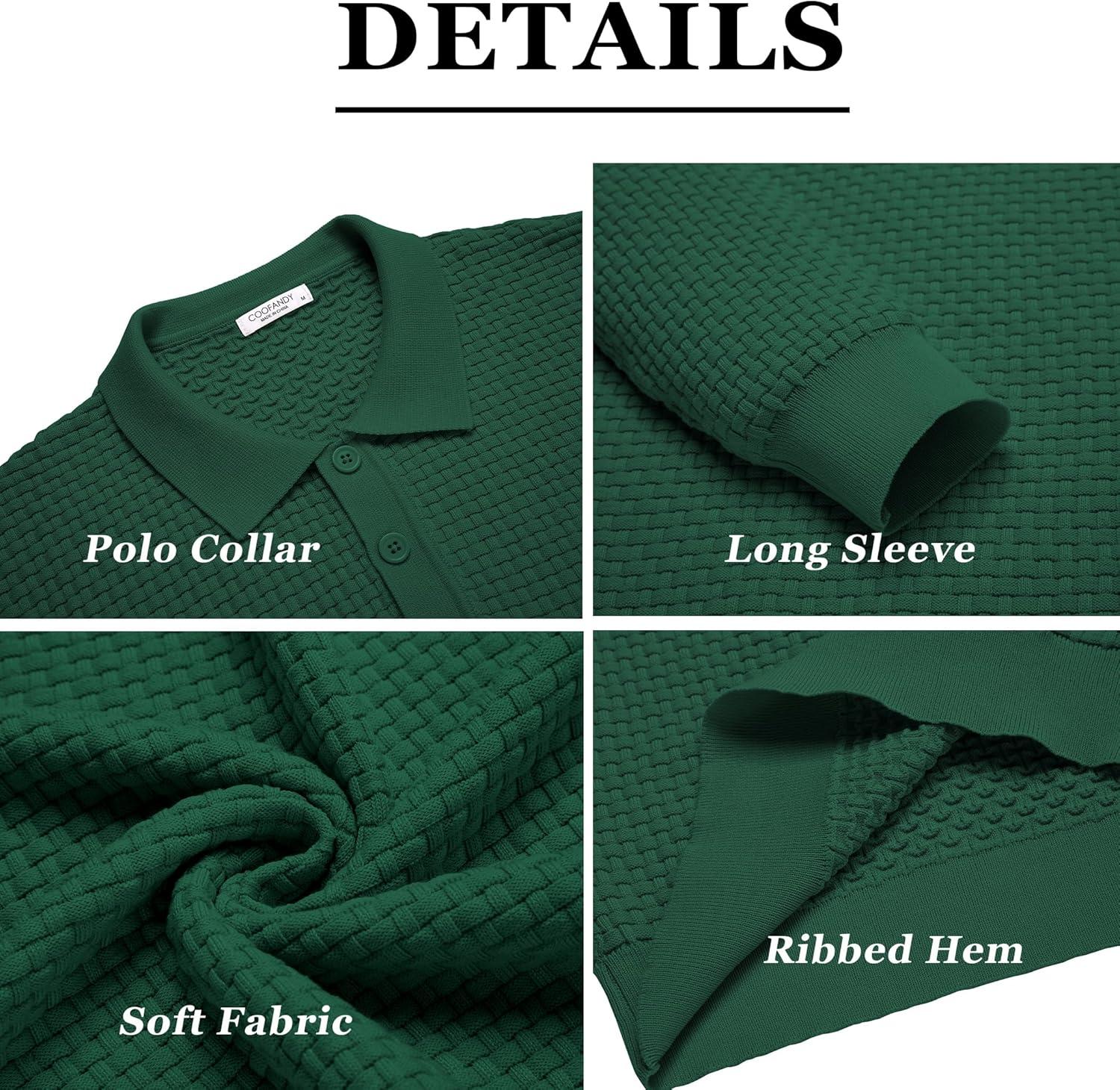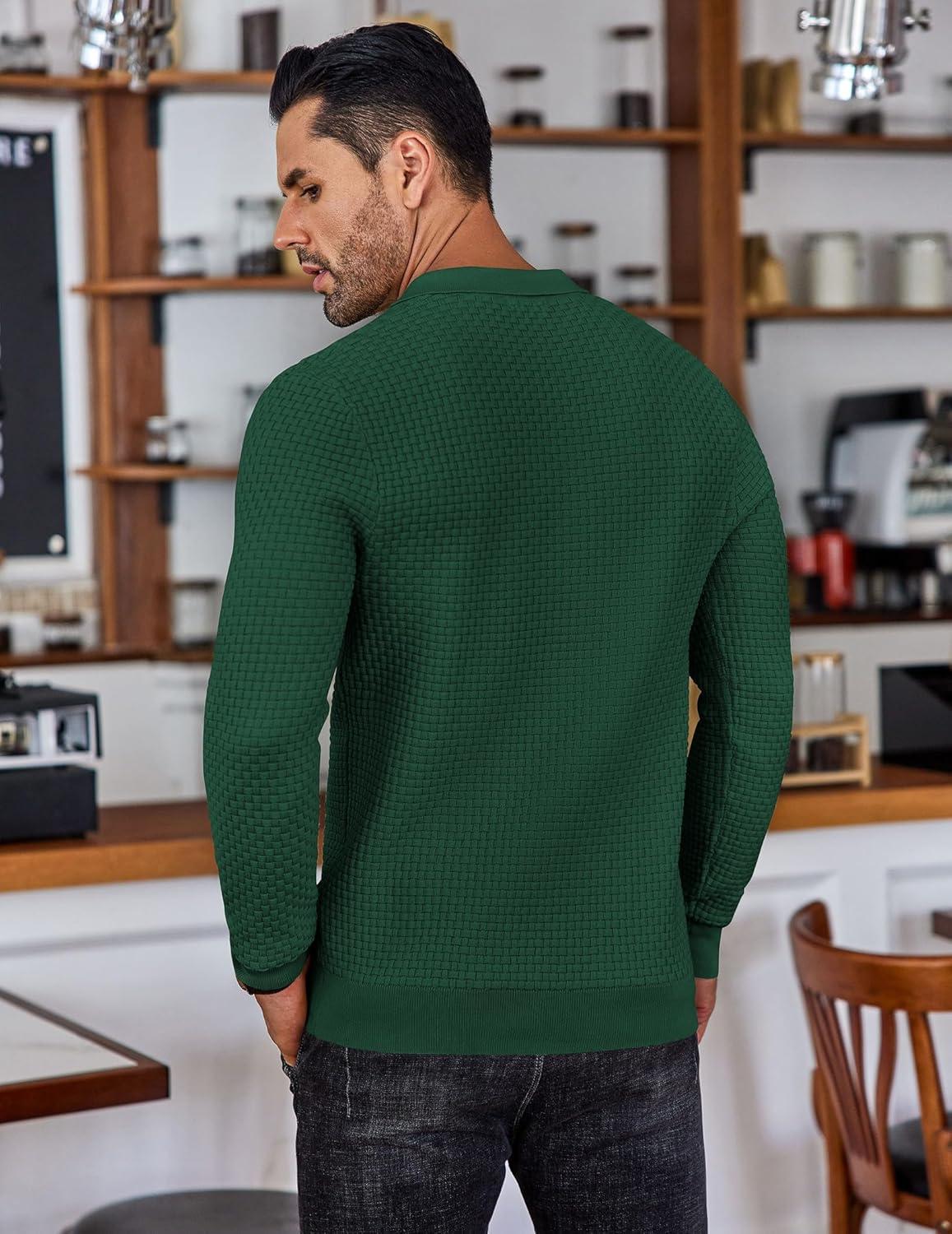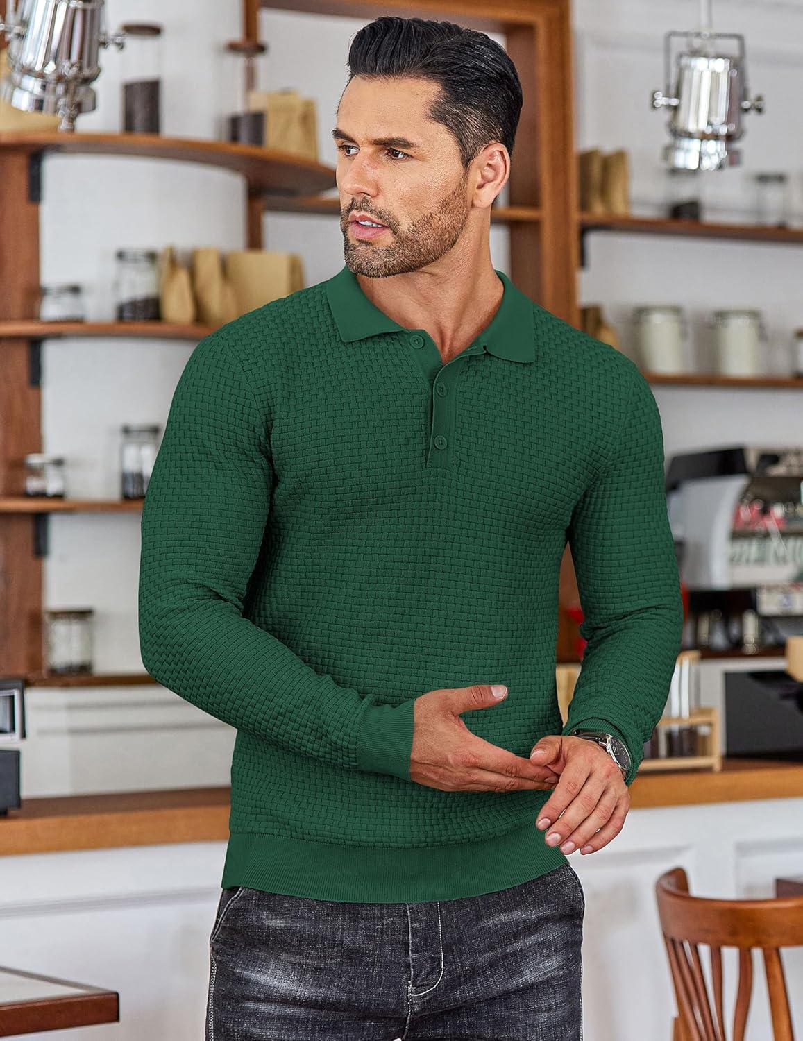 COOFANDY Men's Knit Polo Shirts Long Sleeve Sweater Polo Lightweight Fashion Casual Collared Shirts(Green)