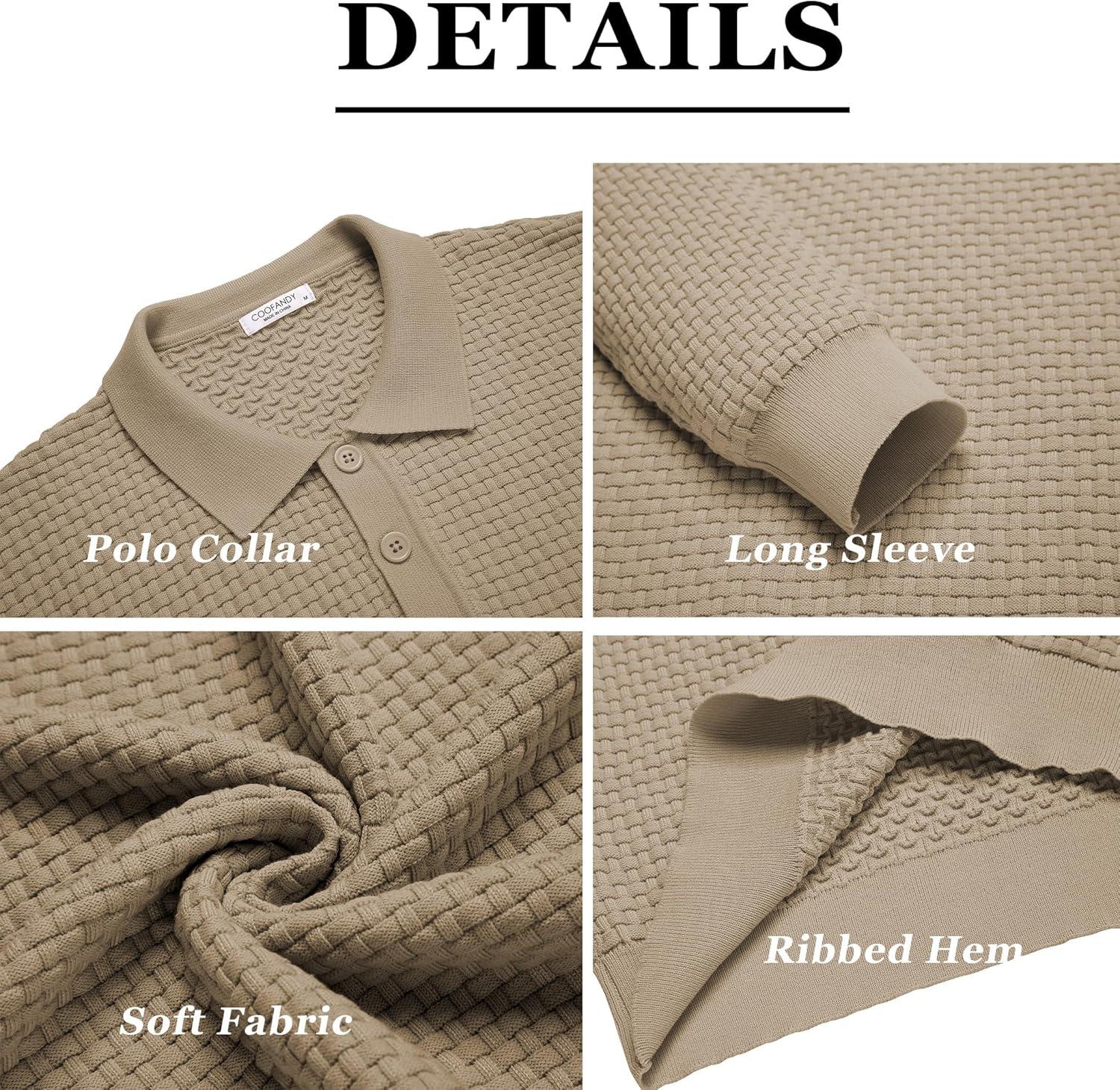 COOFANDY Men’s Knit Polo Shirts Long Sleeve Sweater Polo Lightweight Fashion Casual Collared Shirts(Khaki)