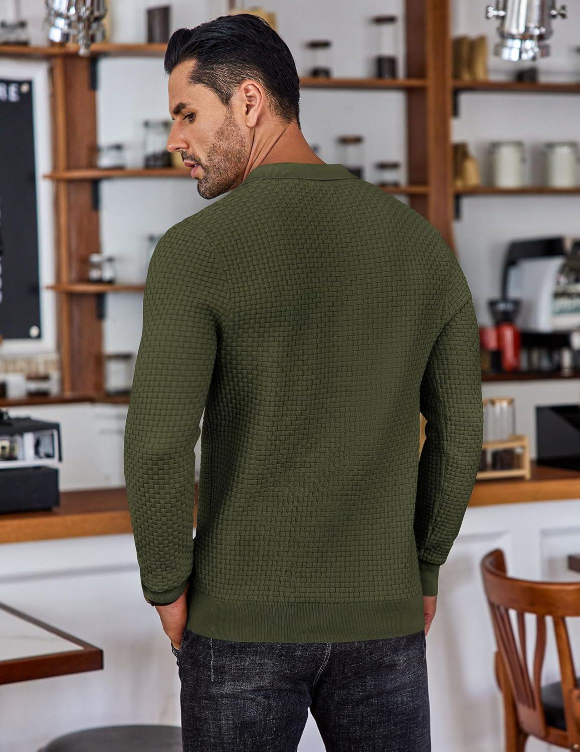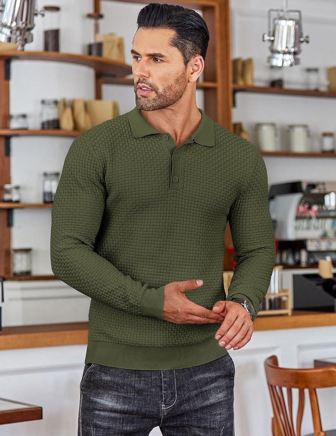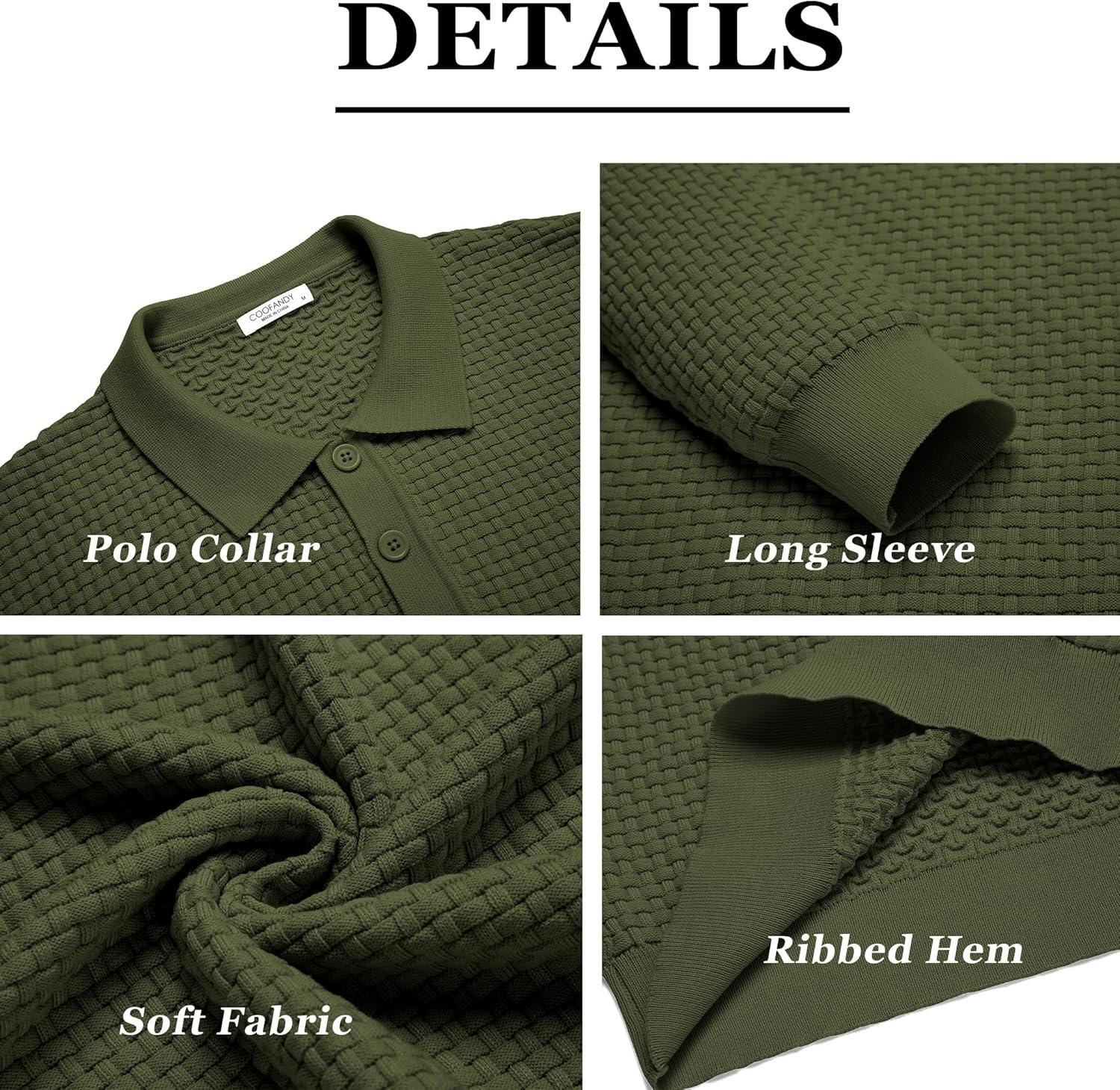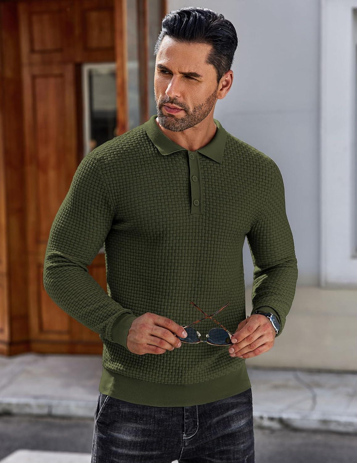COOFANDY Men's Knit Polo Shirts Long Sleeve Sweater Polo Lightweight Fashion Casual Collared T Shirts(Army Green)