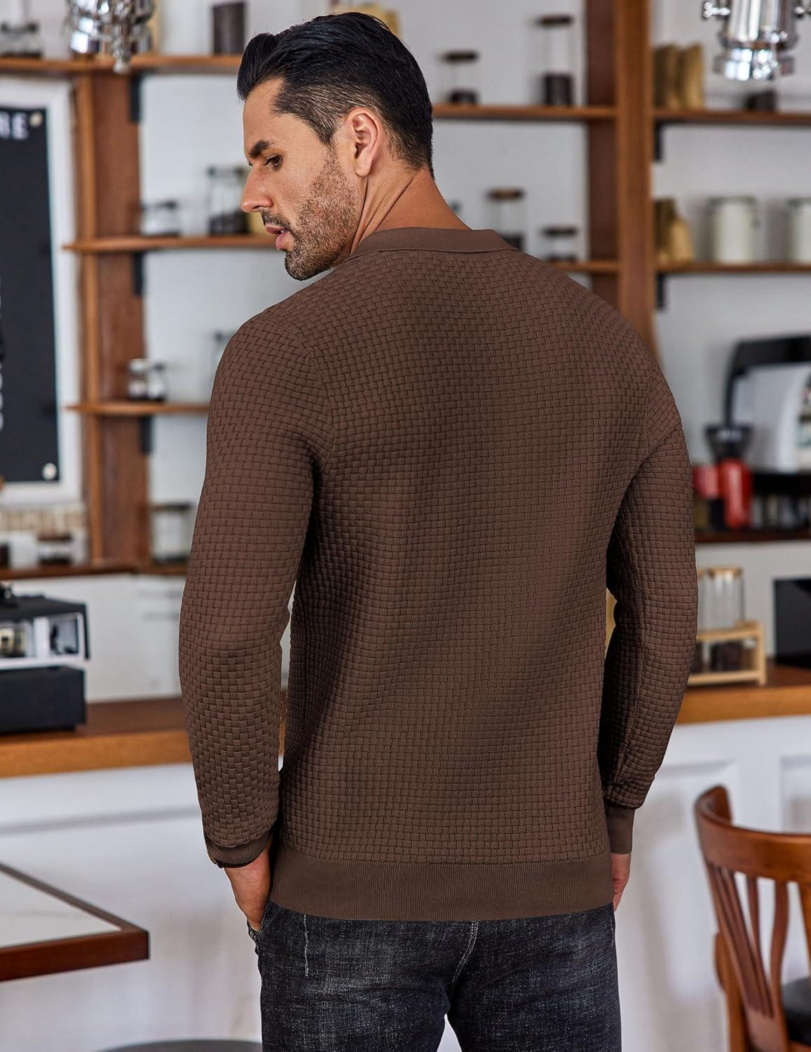 COOFANDY Men's Knit Polo Shirts Long Sleeve Sweater Polo Lightweight Fashion Casual Collared T Shirts(Brown)