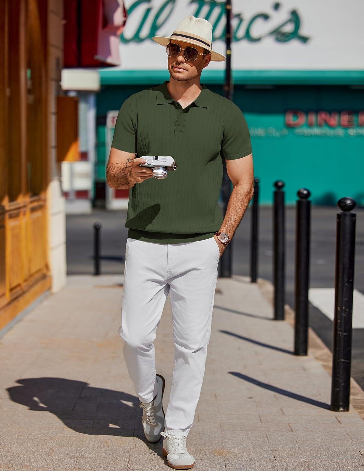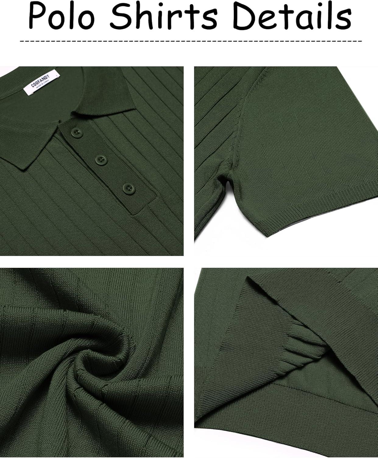 COOFANDY Men's Knit Polo Shirts Short Sleeve Ribbed Knitted Shirt Summer Lightweight Casual Golf Shirts(Army Green)