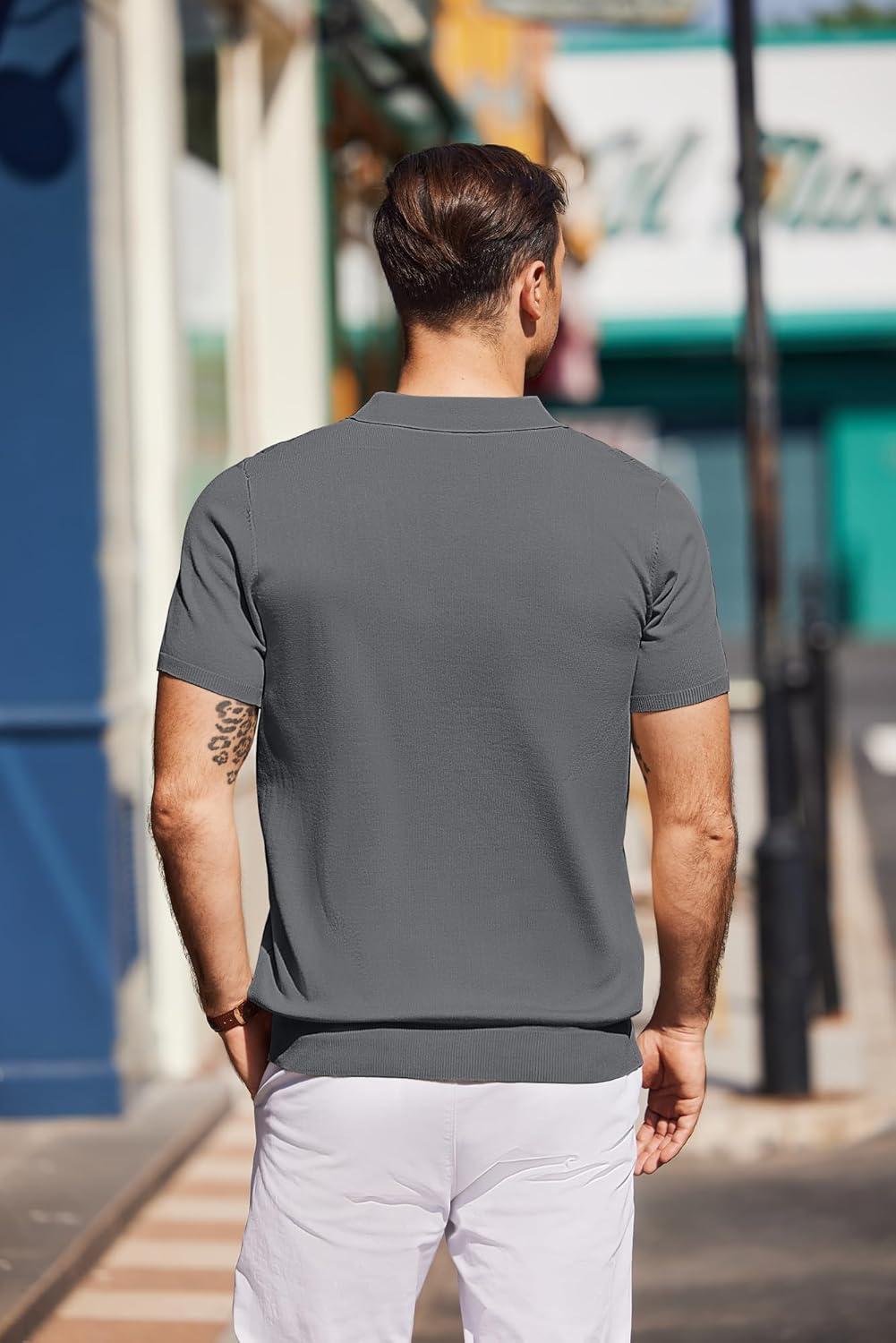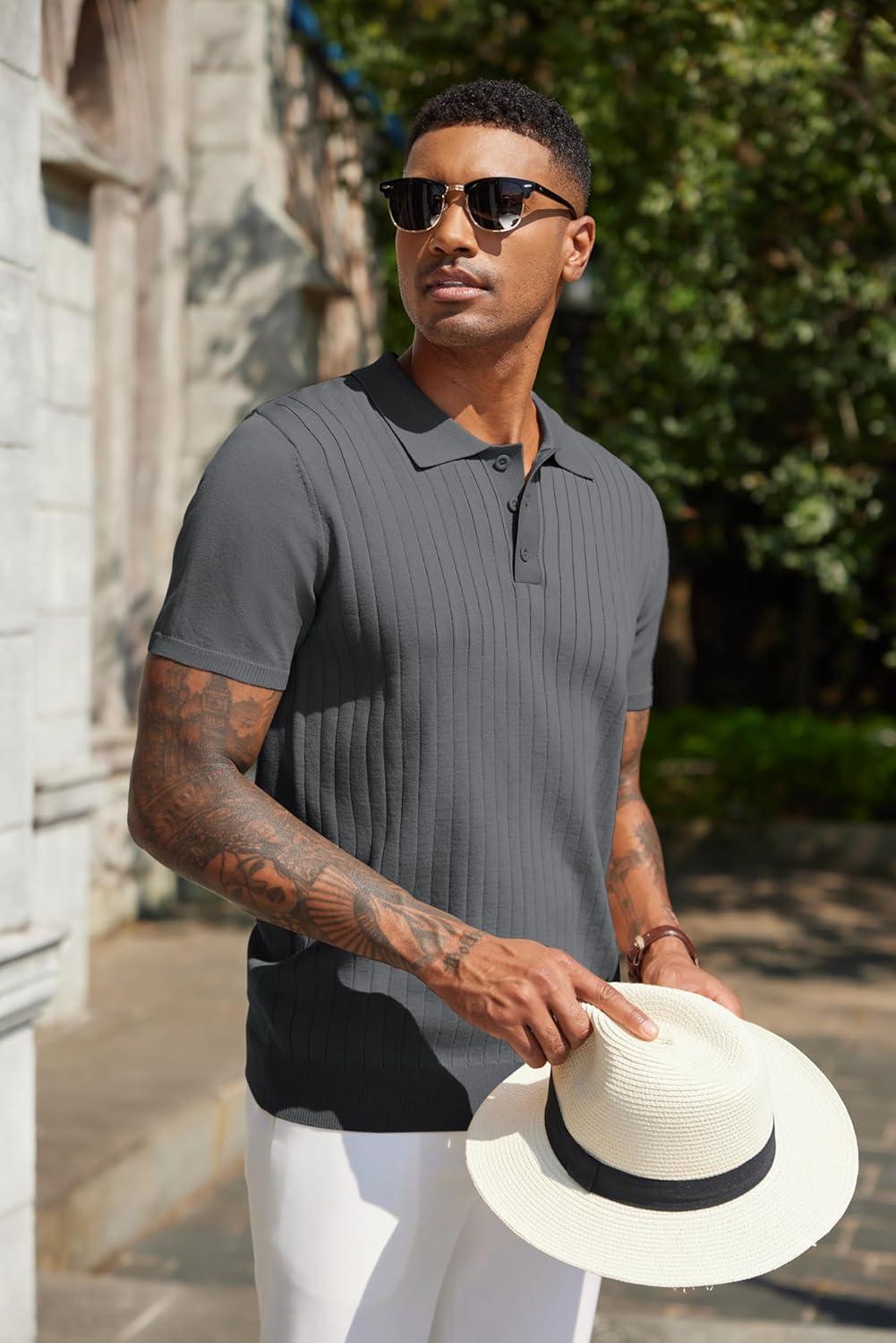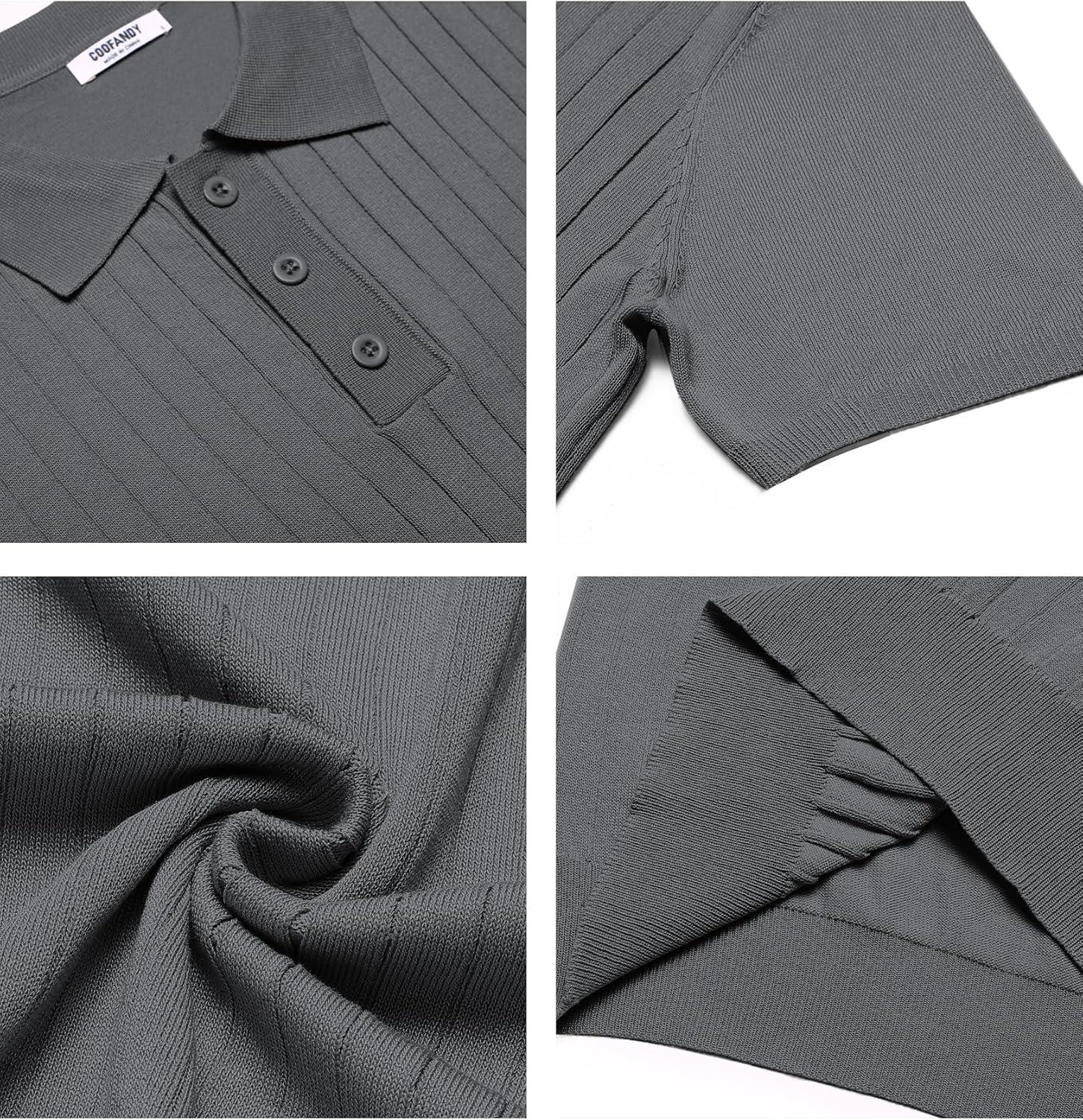 COOFANDY Men's Knit Polo Shirts Short Sleeve Ribbed Knitted Shirt Summer Lightweight Casual Golf Shirts(Dark Grey)
