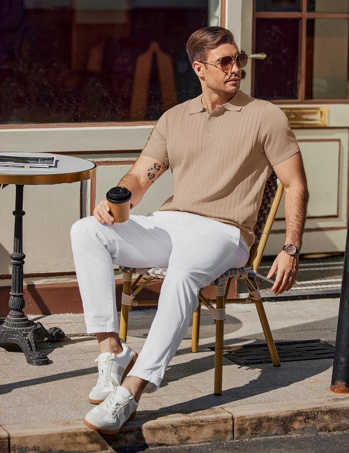 Get up to 70% off on COOFANDY Men’s Knit Polo Shirts Short Sleeve Ribbed Knitted Shirt Summer Lightweight Casual Golf Shirts(Khaki) styles during our end-of-season clearance event.