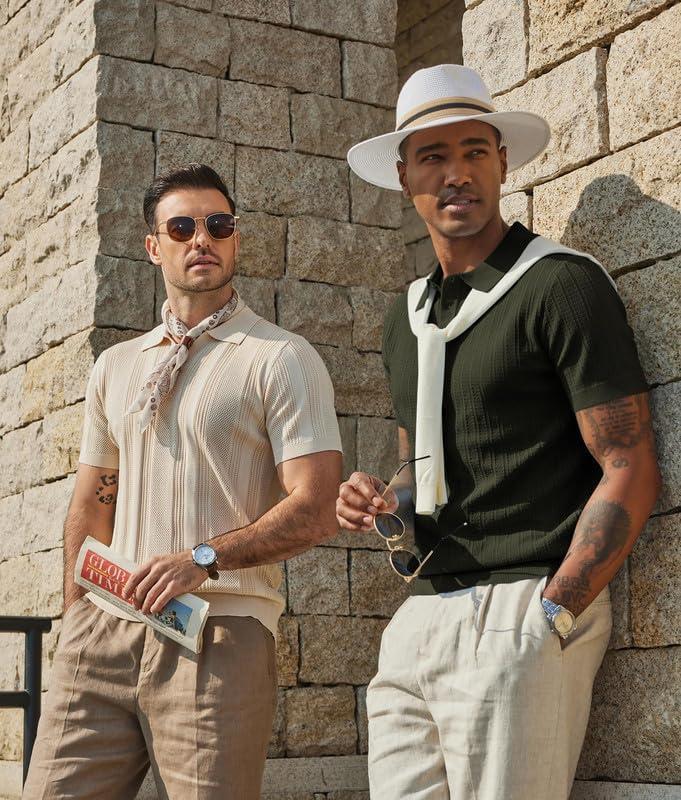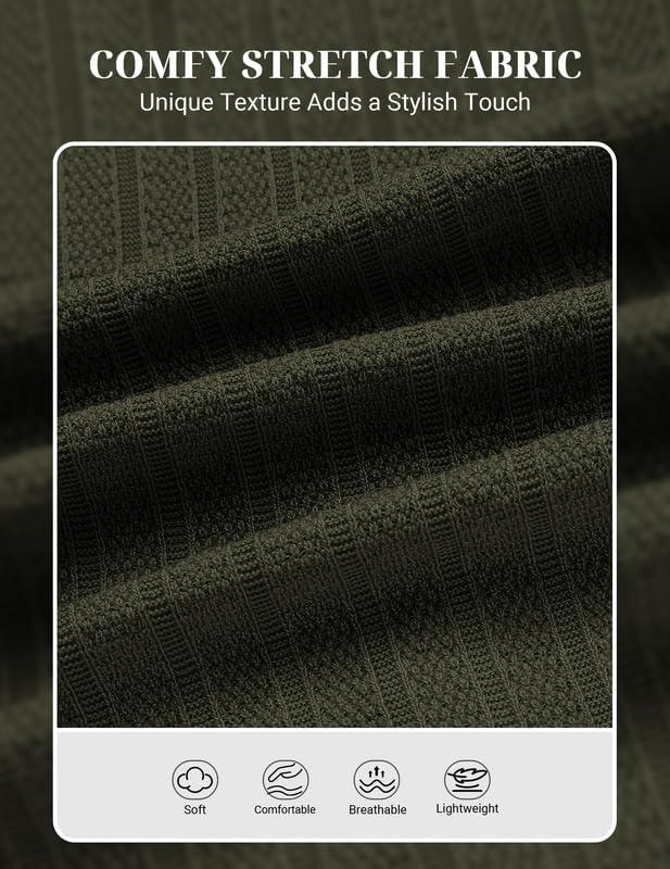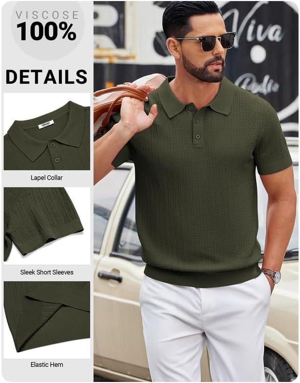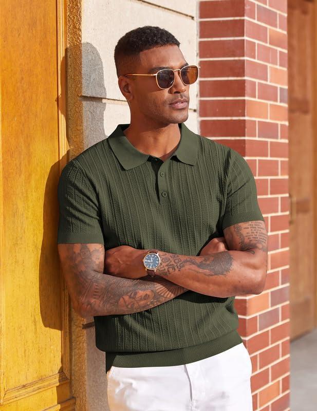COOFANDY Mens Knit Polo Shirts Short Sleeve Slim Fit Textured Golf Polo Shirt Casual Summer Vacation T-Shirts(Army Green)
