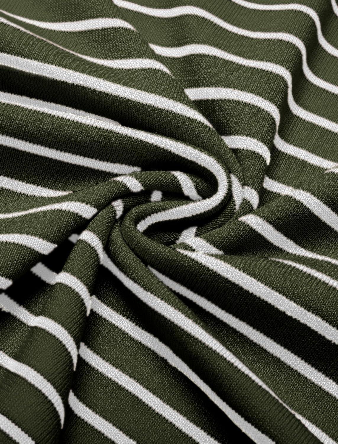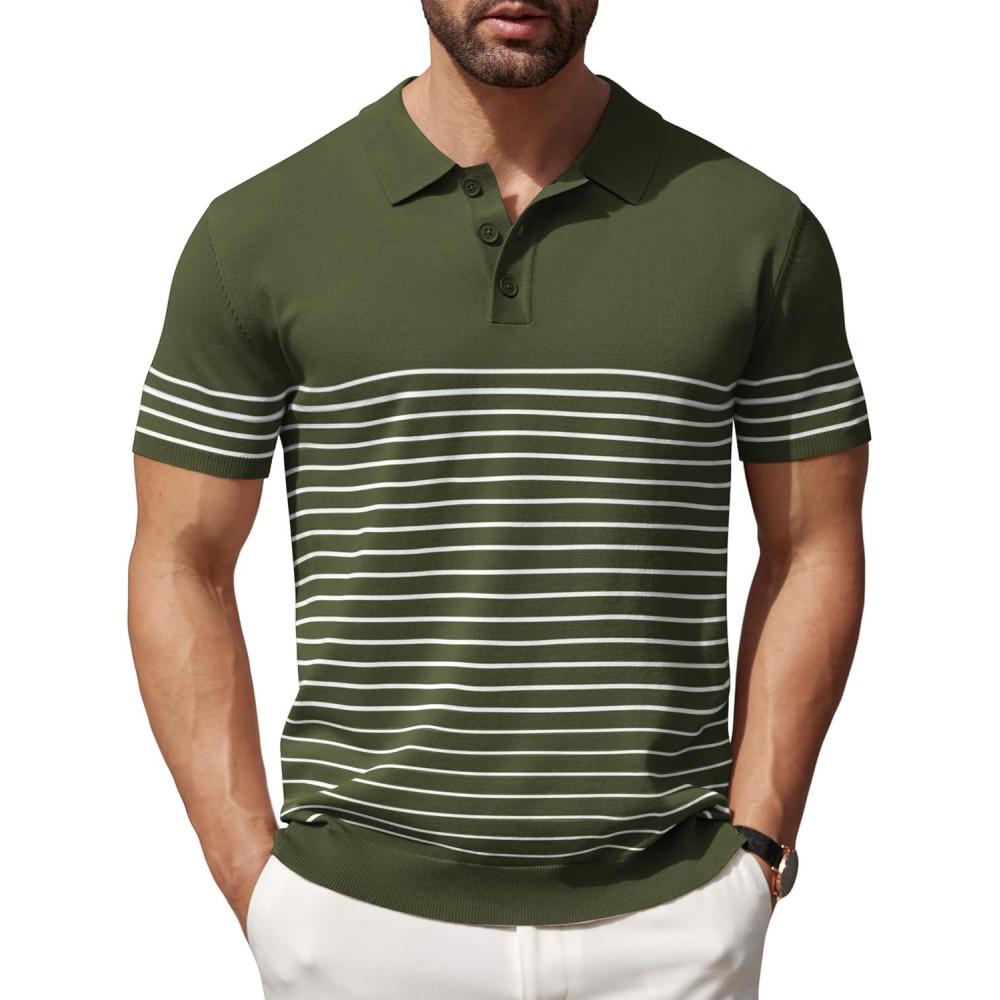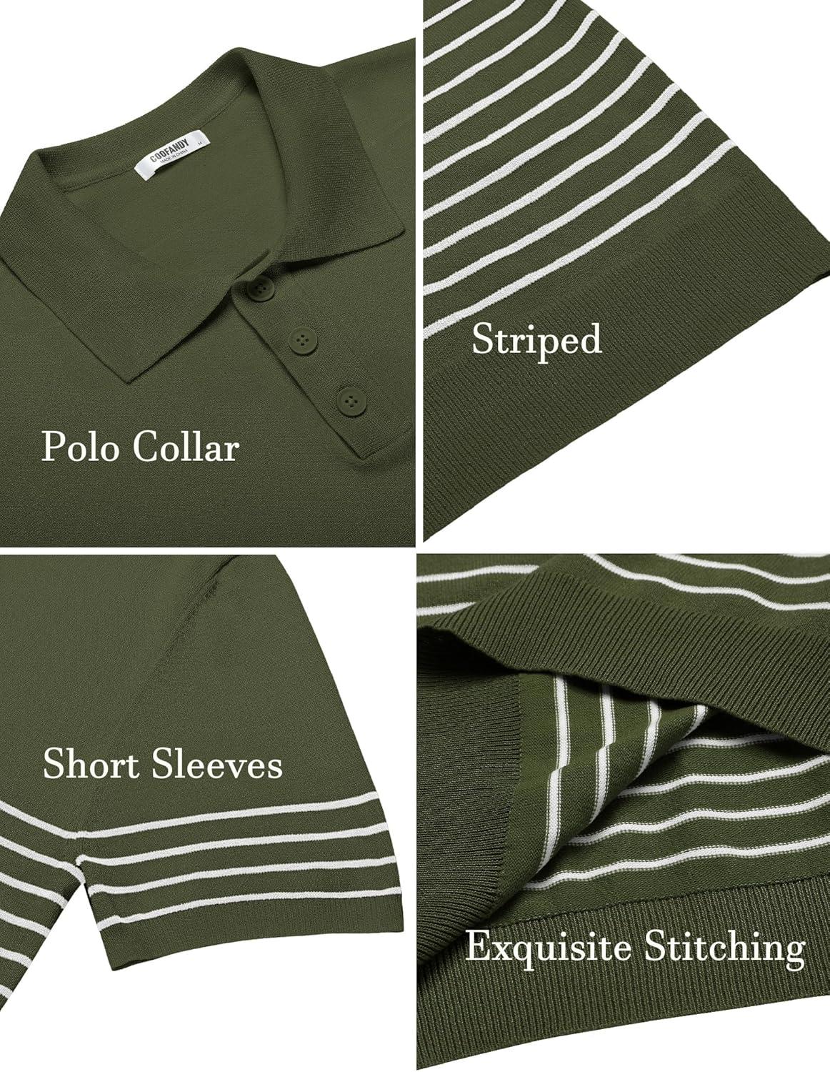 COOFANDY Men's Knit Polo Shirts Short Sleeve Striped Golf Polo Shirts Lightweight Casual Collared T Shirt(Army Green (White Stripes))