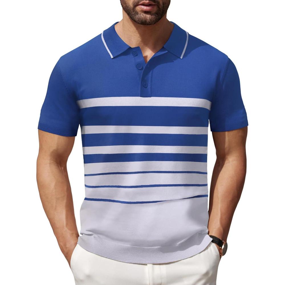 COOFANDY Men's Knit Polo Shirts Short Sleeve Striped Golf Polo Shirts Lightweight Casual Collared T Shirt(Blue and White)