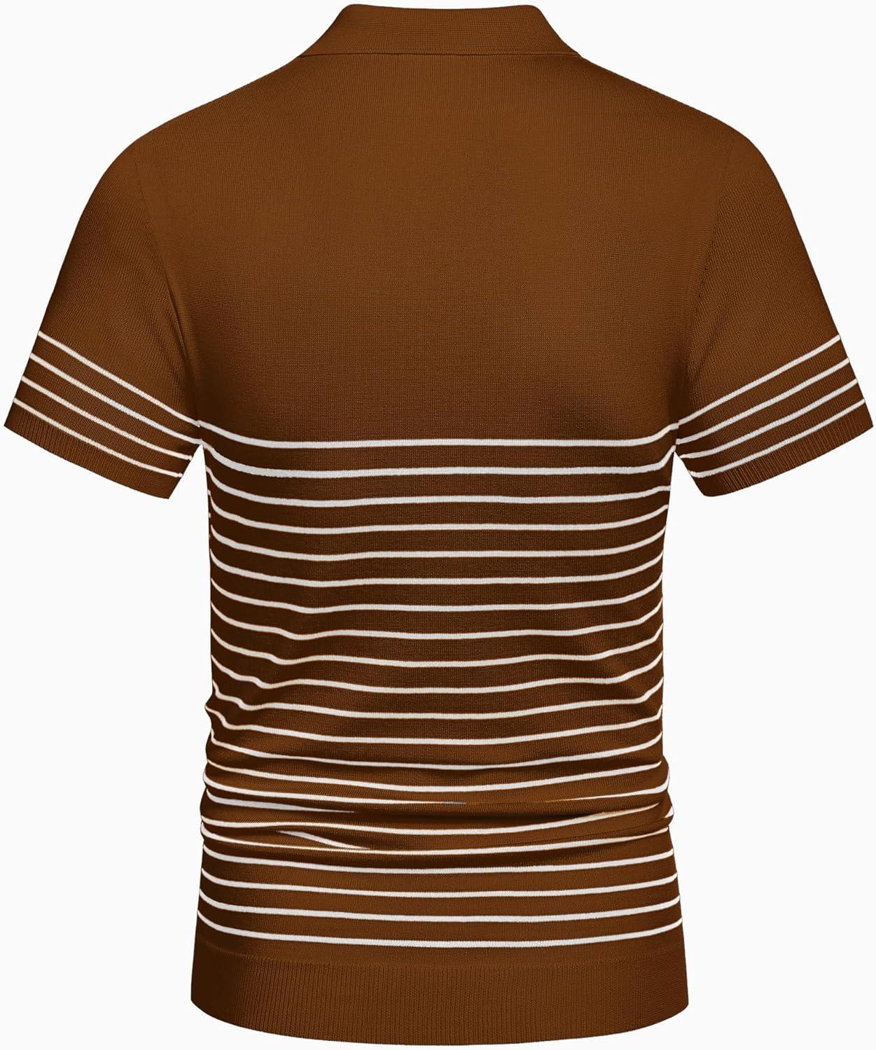 COOFANDY Men's Knit Polo Shirts Short Sleeve Striped Golf Polo Shirts Lightweight Casual Collared T Shirt(Caramel (White Stripes))