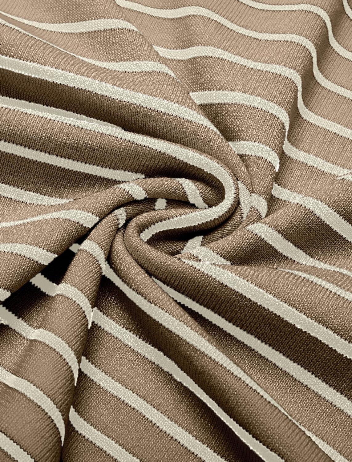 COOFANDY Men’s Knit Polo Shirts Short Sleeve Striped Golf Polo Shirts Lightweight Casual Collared T Shirt(Khaki and Beige)