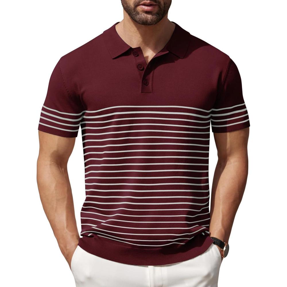Save big on COOFANDY Men’s Knit Polo Shirts Short Sleeve Striped Golf Polo Shirts Lightweight Casual Collared T Shirt(Wine Red (White Stripes)) and accessories during our BOGO sale. Buy one, get one 50% off!