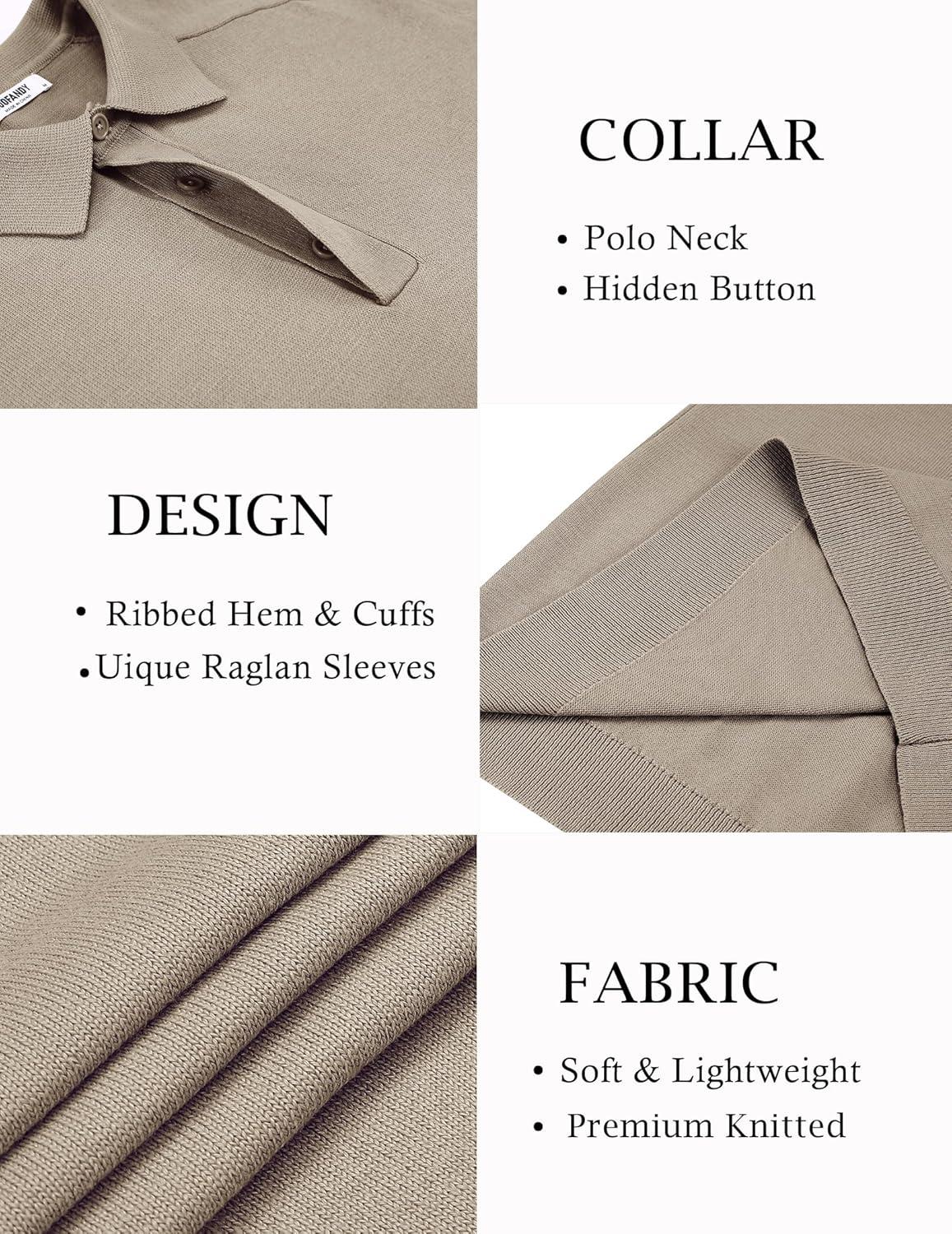 COOFANDY Mens Knit Polo Sweater Long Sleeve Polo Collared Sweaters Hidden Button Casual Pullover Sweater(Khaki)
