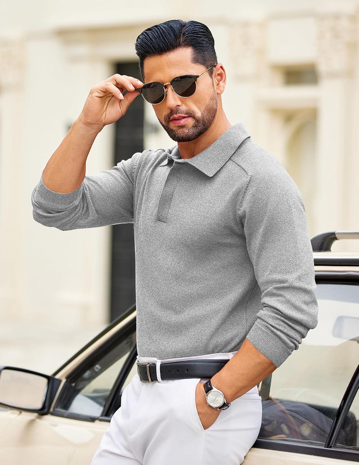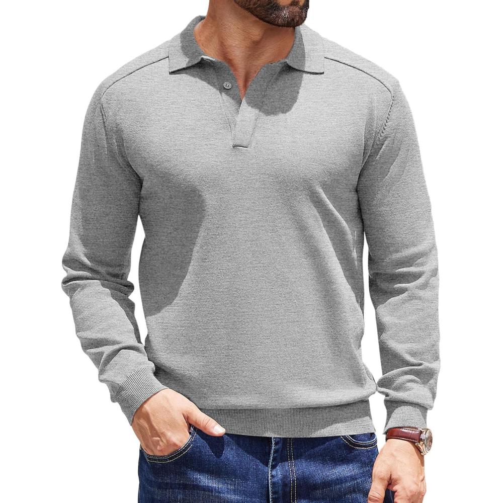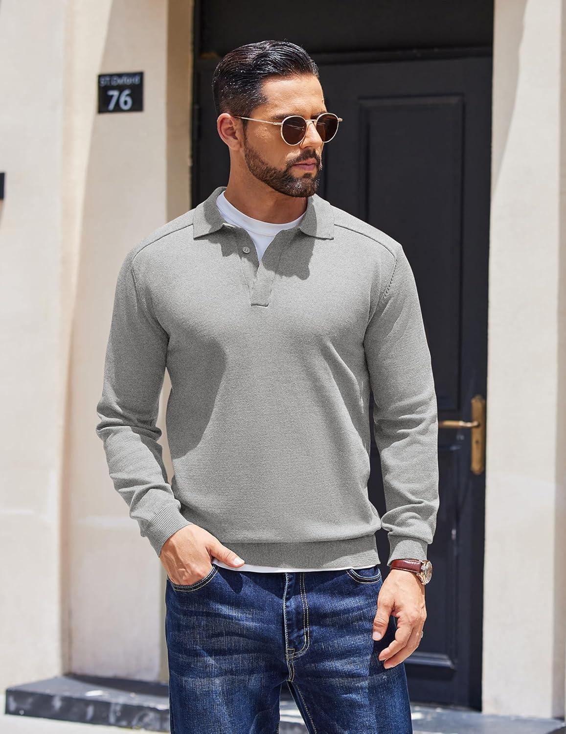 Don’t miss out on our limited-time offer: buy COOFANDY Mens Knit Polo Sweater Long Sleeve Polo Collared Sweaters Hidden Button Casual Pullover Sweater(Light Grey), get a free {accessory}!