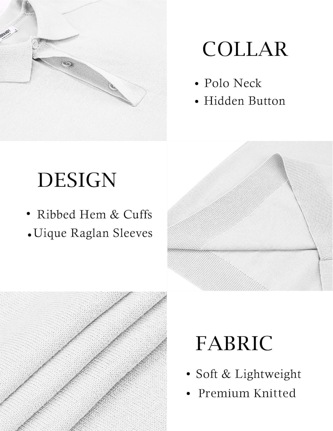 COOFANDY Mens Knit Polo Sweater Long Sleeve Polo Collared Sweaters Hidden Button Casual Pullover Sweater(White)