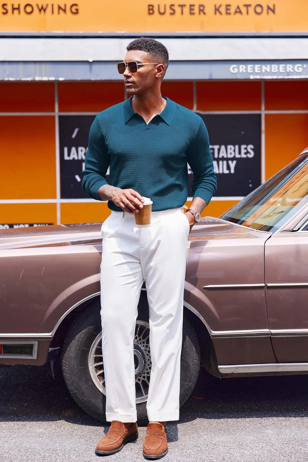 Score big savings on COOFANDY Mens Knit Polo Sweater V-Neck Long Sleeve Textured Lightweight Casual Dress Pullover Fall Sweaters(Peacock Blue) during our back-to-school sale. Limited quantities available.