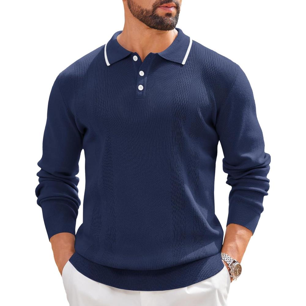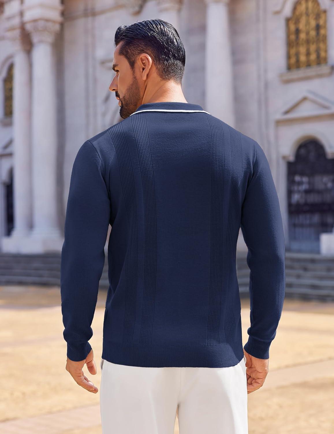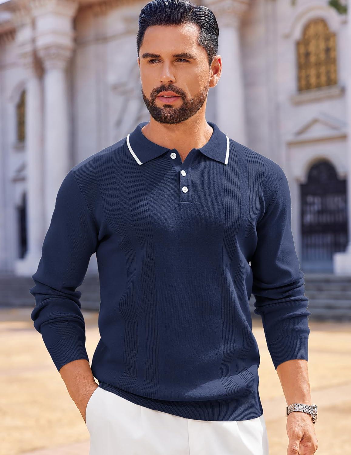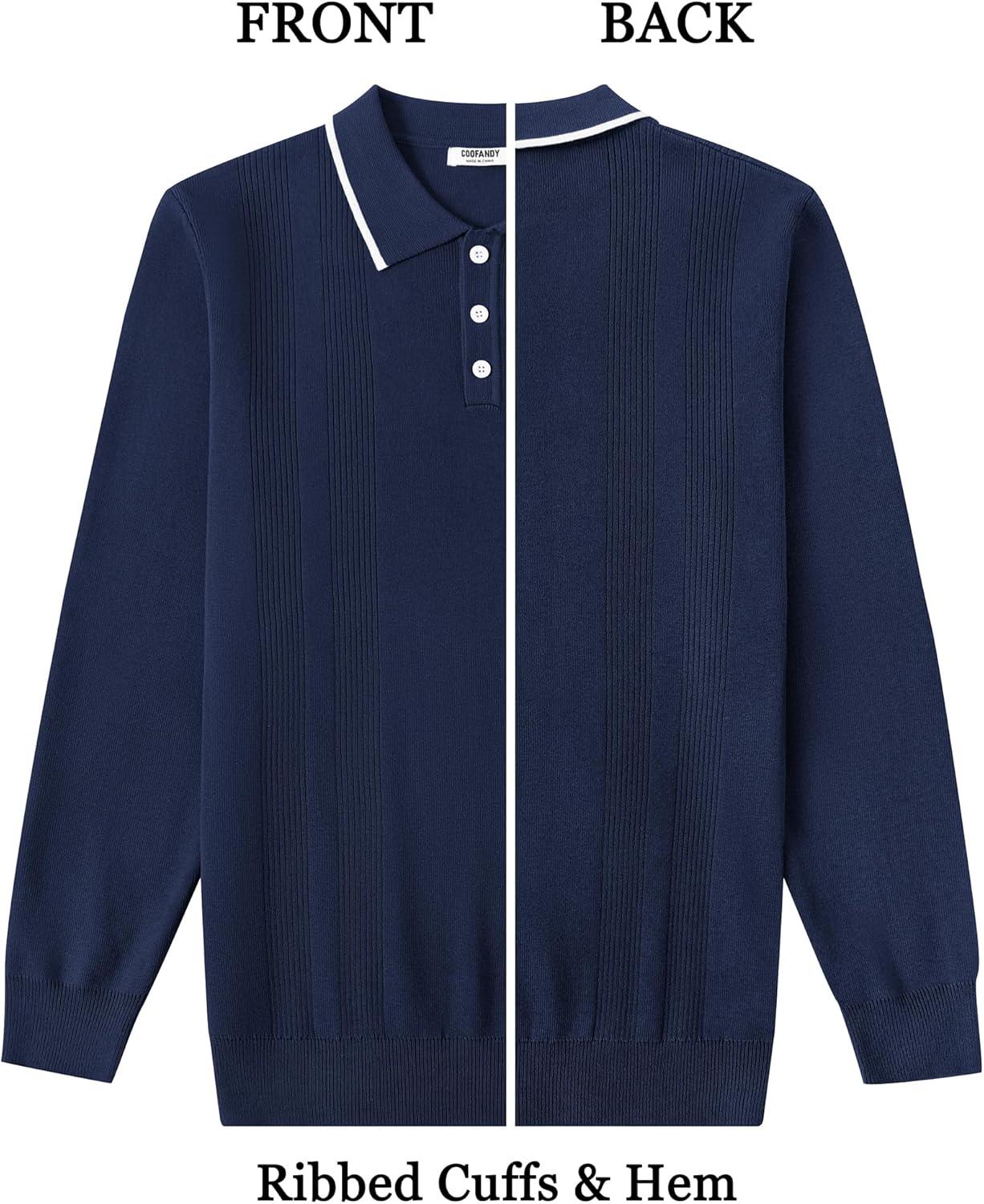 COOFANDY Mens Knit Polo Sweaters Long Sleeve Vintage Polos Casual Dress Pullover Old Money Tops(Navy Blue)