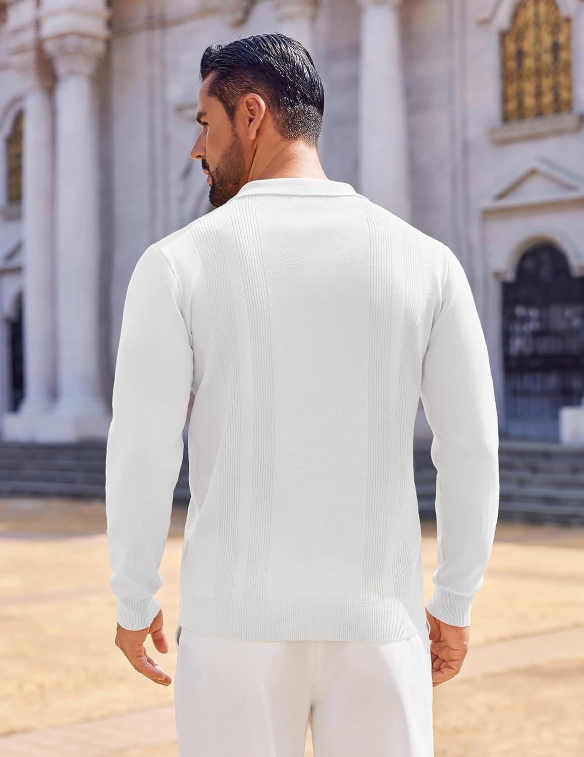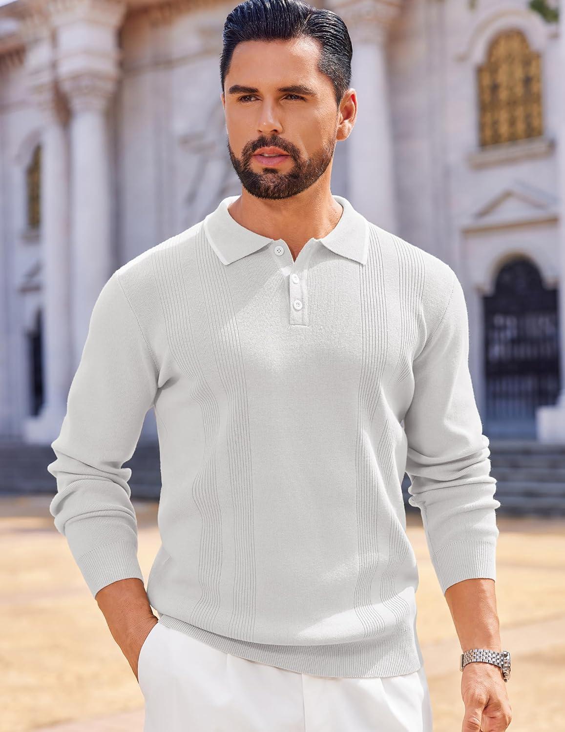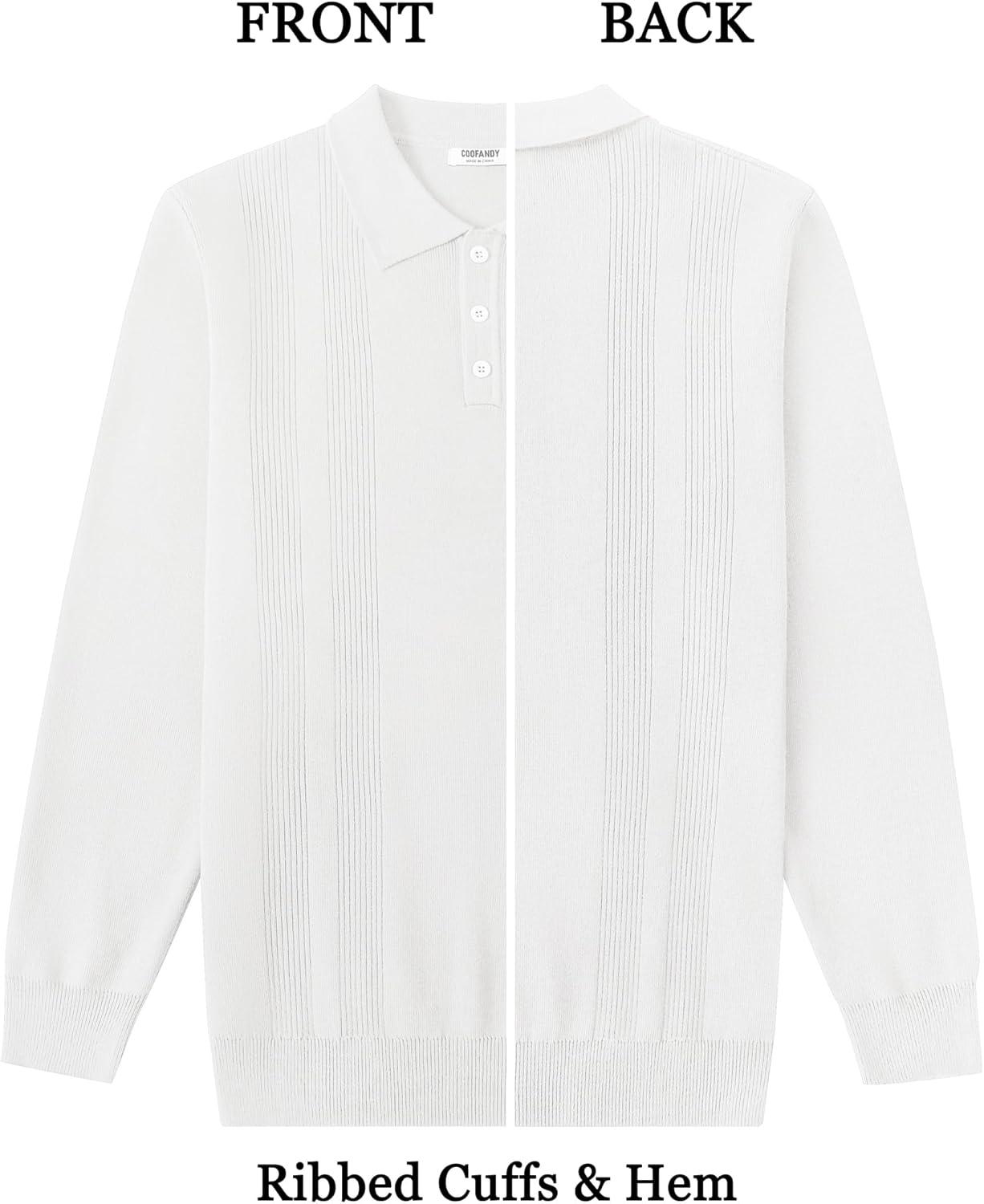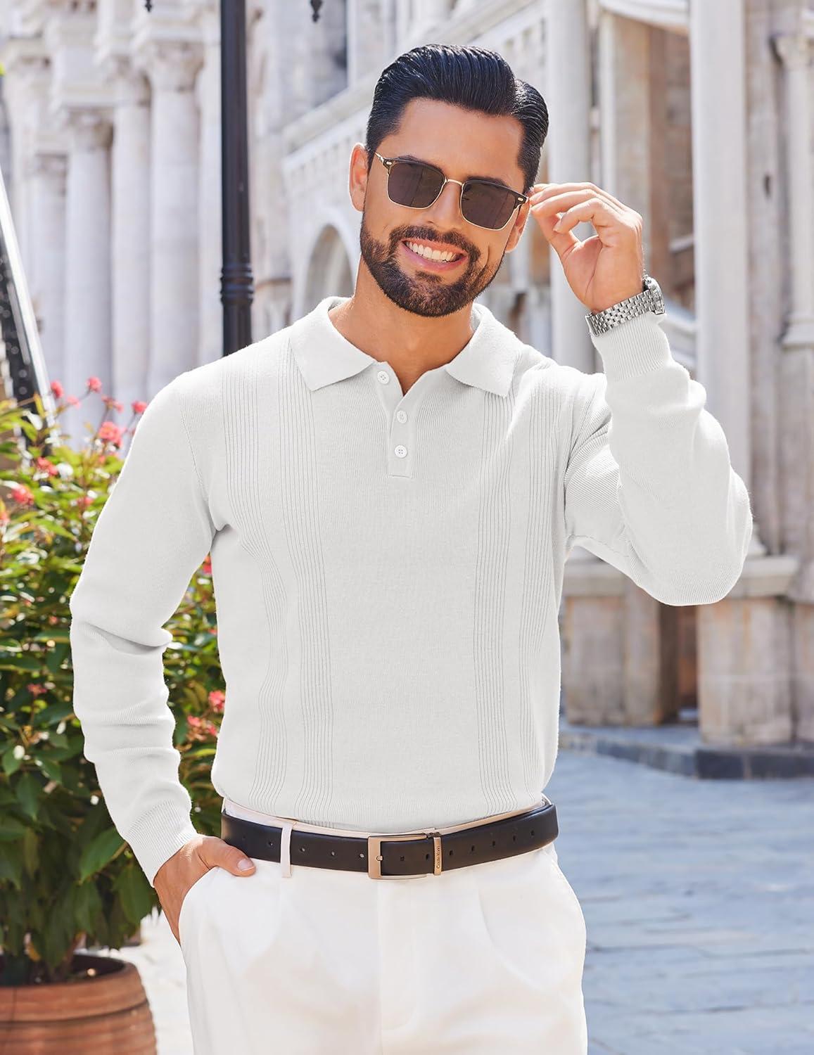 COOFANDY Mens Knit Polo Sweaters Long Sleeve Vintage Polos Casual Dress Pullover Old Money Tops(White)