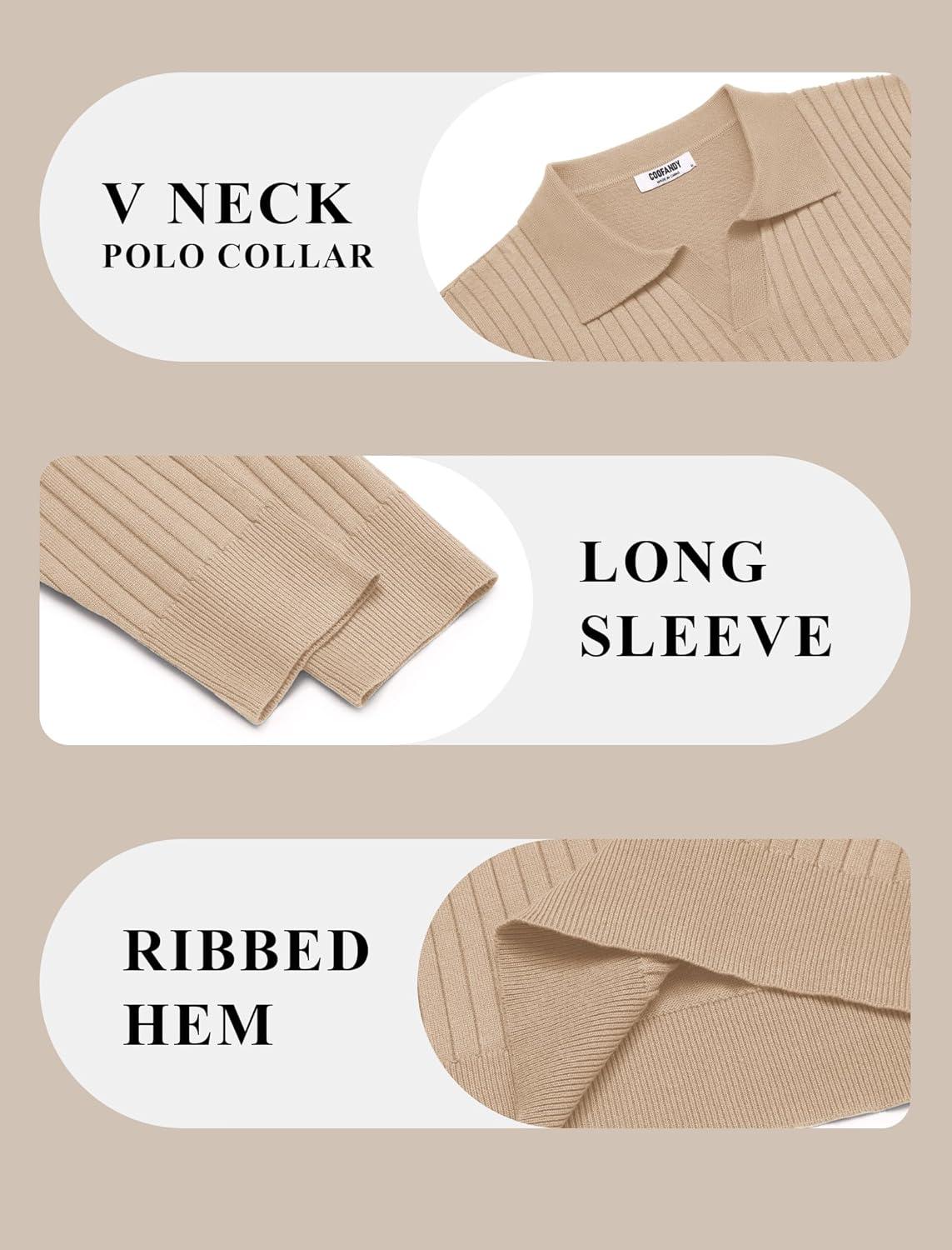 COOFANDY Mens Knit Polos Long Sleeve Casual Sweater Polos V Neck Collared Sweater Golf Polo Sweaters and Pullovers(Apricot)