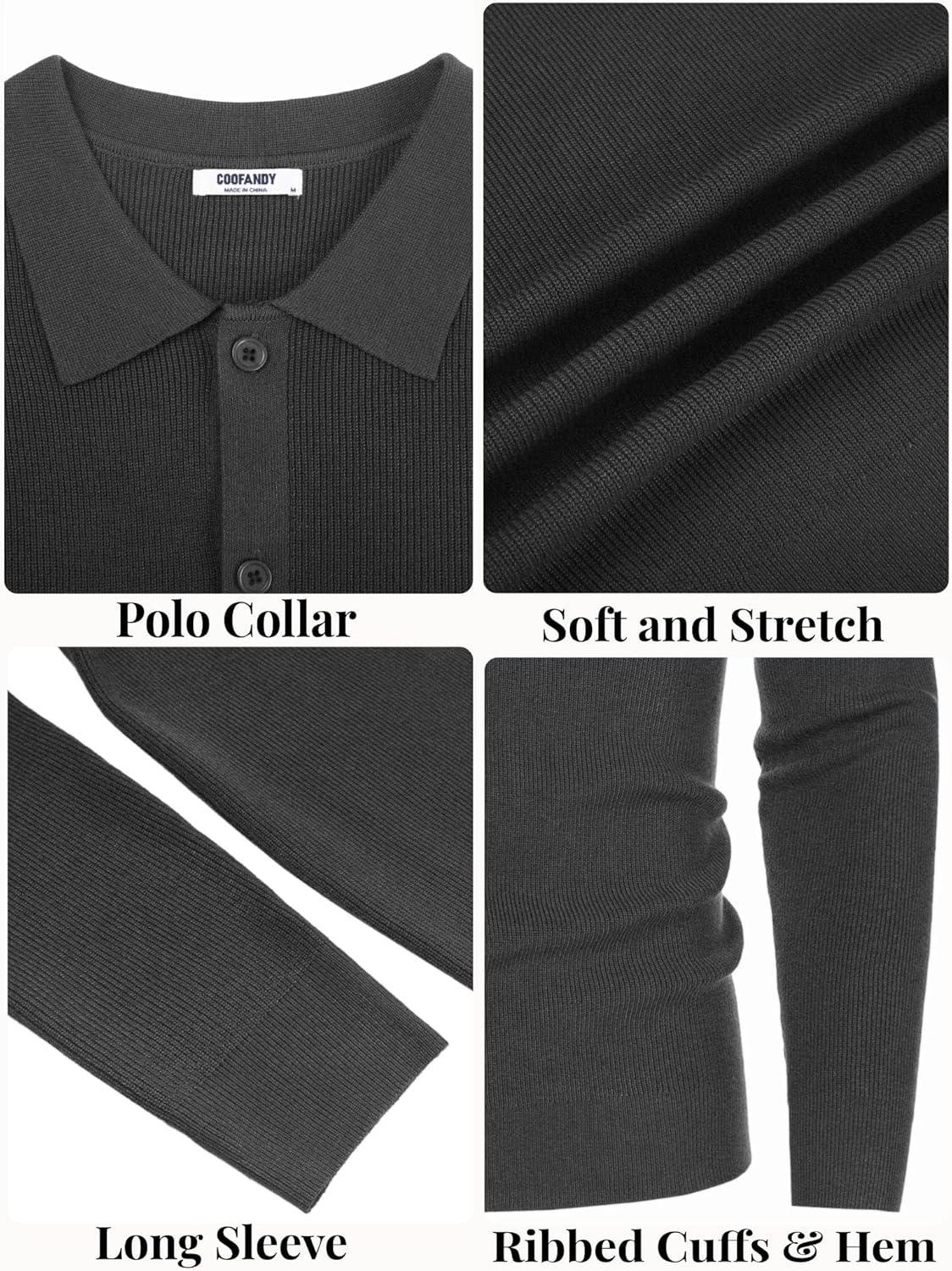 COOFANDY Mens Knit Pullover Sweater Long Sleeve Casual Sweater Open Front Ribbed Sweater(Dark Gray)