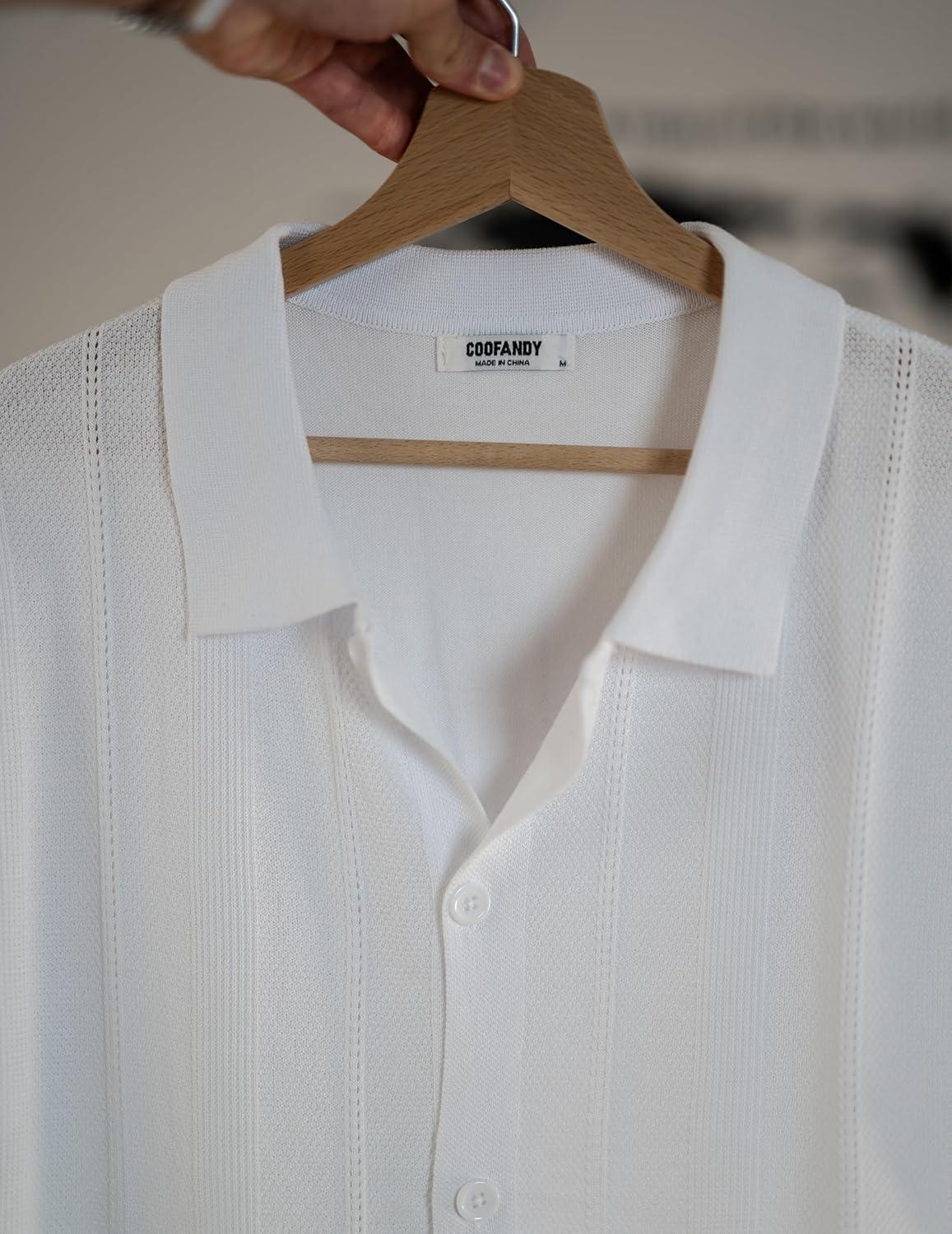 COOFANDY Mens Knit Shirt Short Sleeve Button Down Shirts Casual Summer Beach Vintage Polo Shirts(White)