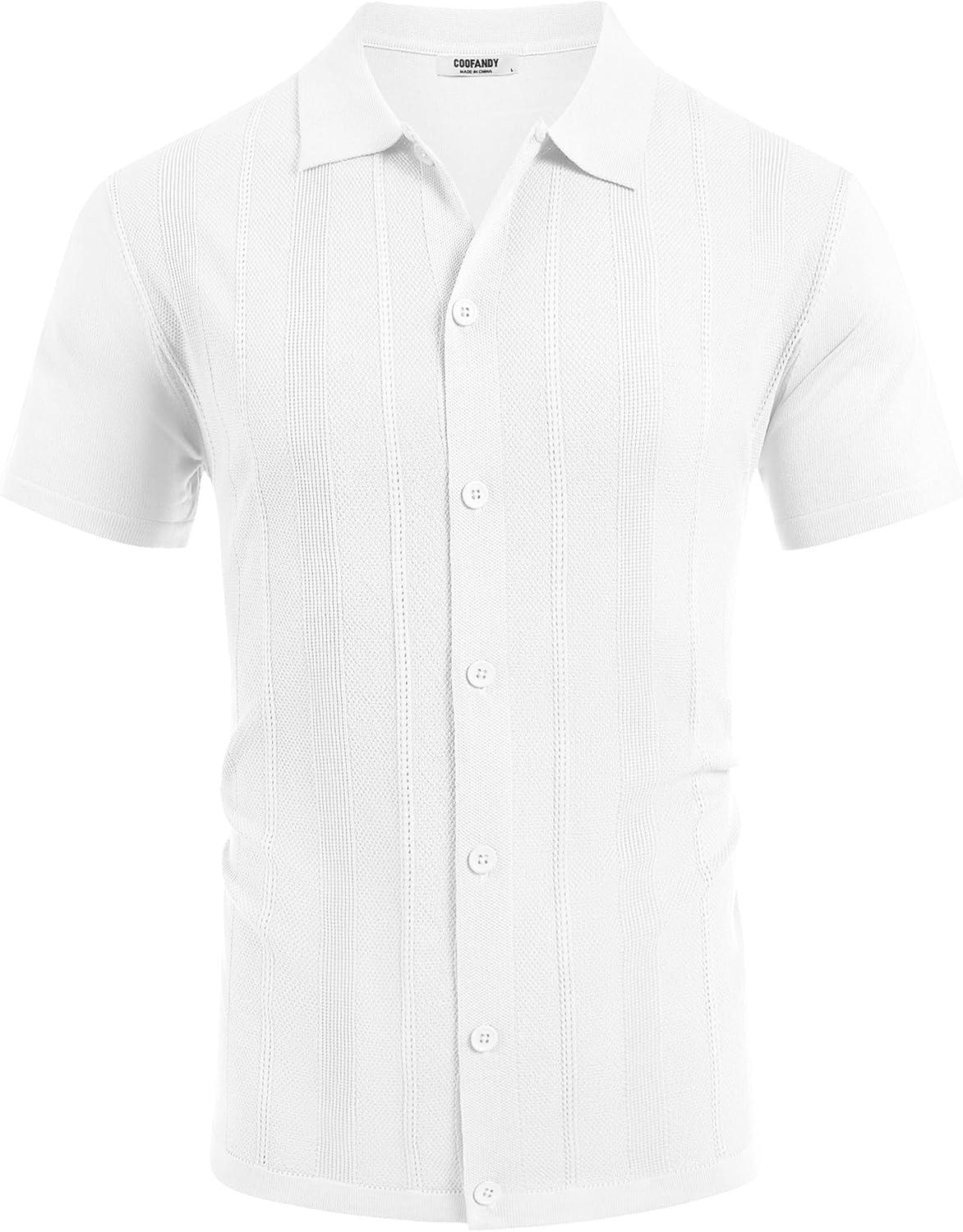 Get up to 50% off on COOFANDY Mens Knit Shirt Short Sleeve Button Down Shirts Casual Summer Beach Vintage Polo Shirts(White) styles during our spring sale event.