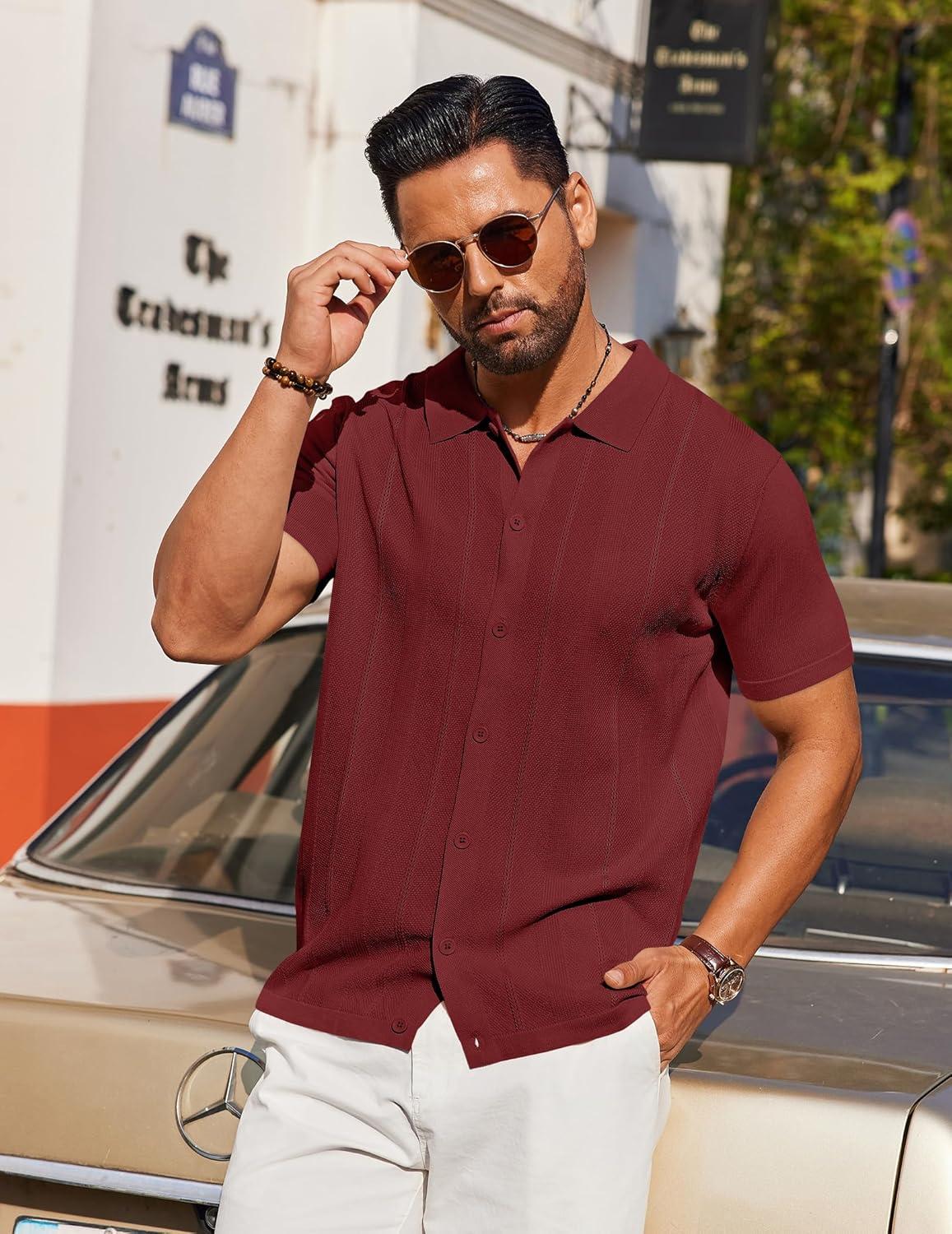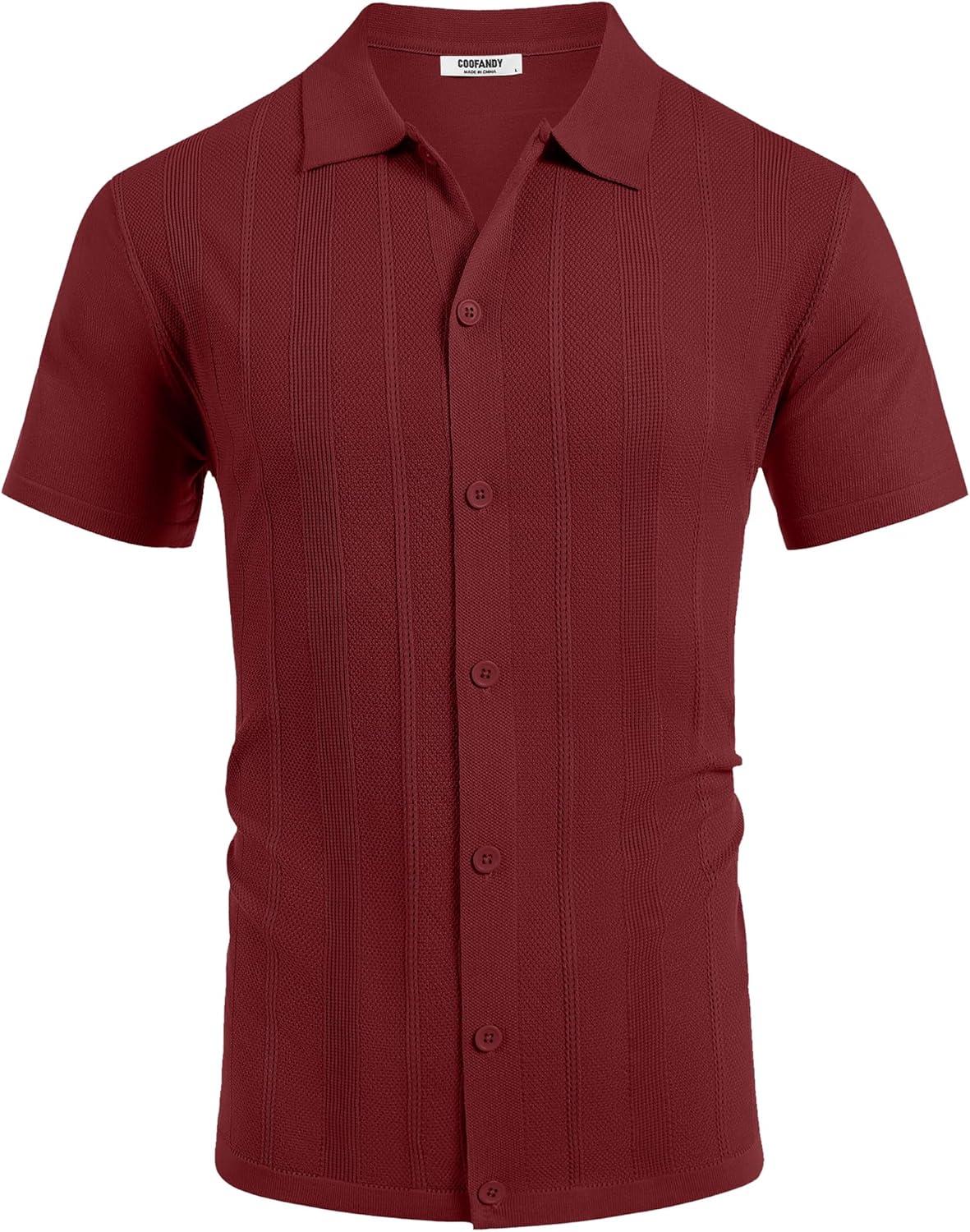 Get your hands on our exclusive COOFANDY Mens Knit Shirt Short Sleeve Button Down Shirts Casual Summer Beach Vintage Polo Shirts(Wine Red) collection, now at a discounted price.