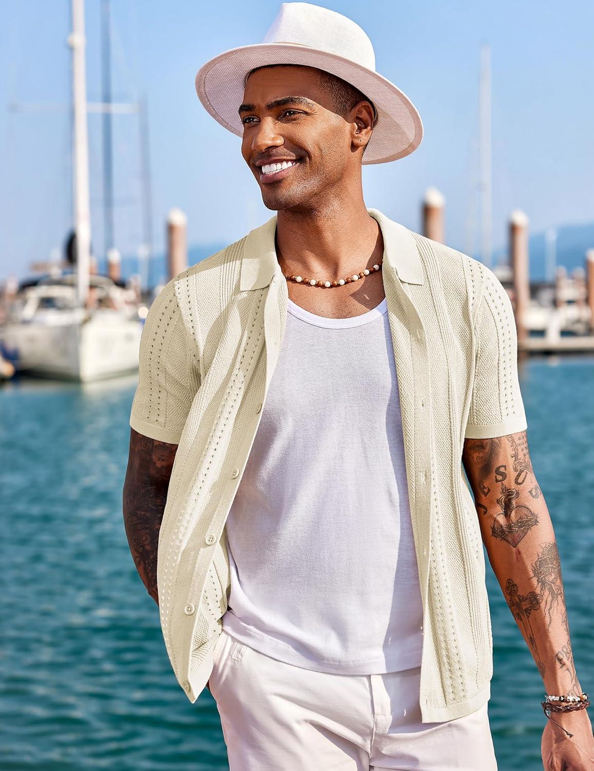 Don’t miss out on our limited-time offer: buy COOFANDY Men’s Knit Shirts Short Sleeve Button Down Polo Shirt Fashion Casual Summer Beach Shirts(Cream), get {accessory} free!