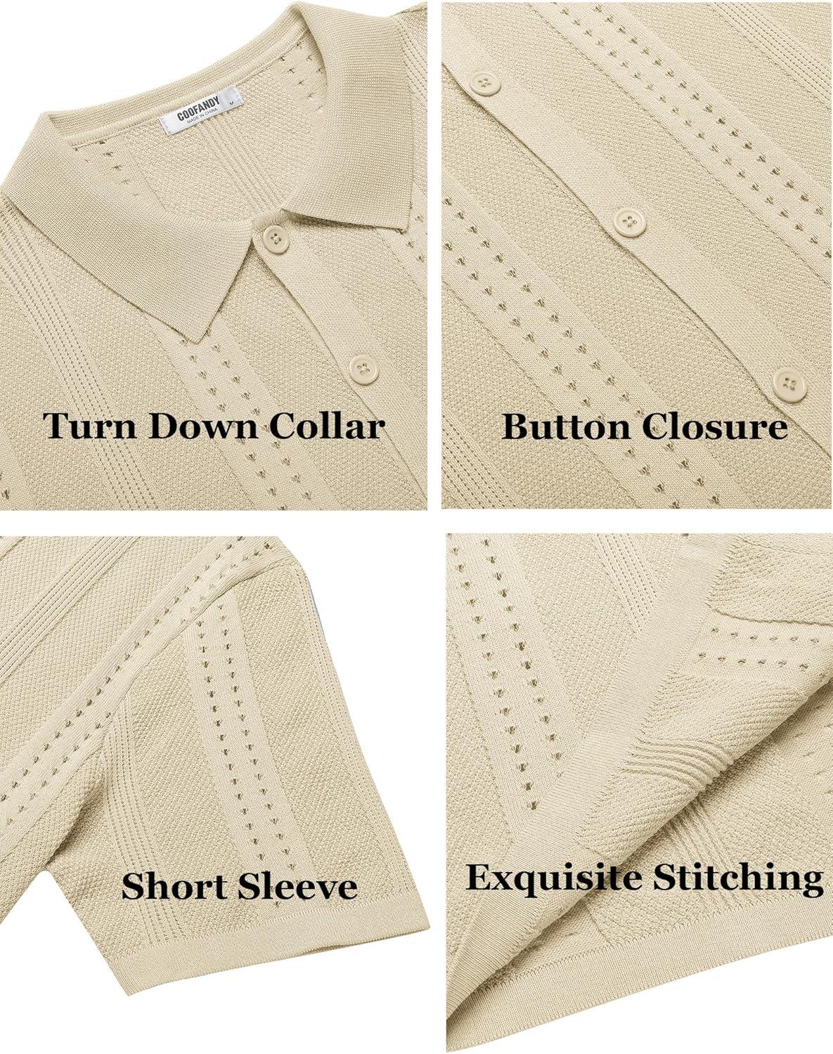COOFANDY Men's Knit Shirts Short Sleeve Button Down Polo Shirt Fashion Casual Summer Beach Shirts(Cream)