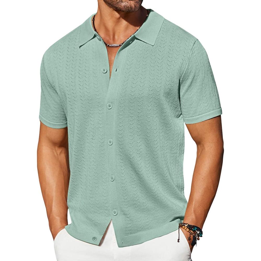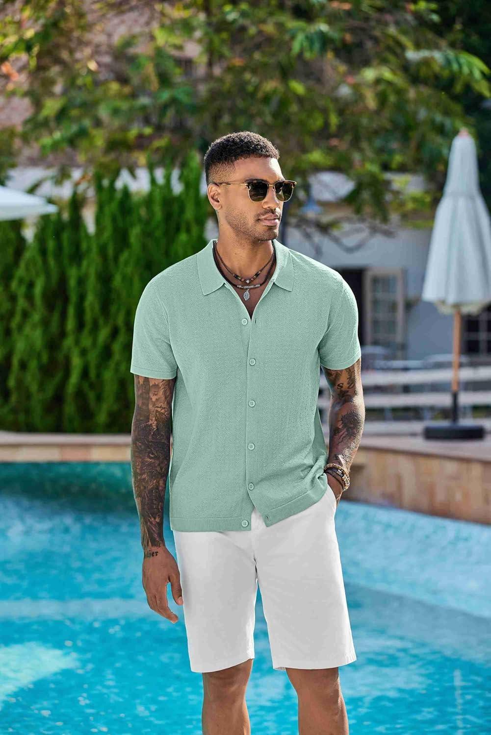 COOFANDY Men’s Knit Shirts Short Sleeve Button Down Shirt Casual Summer Beach Shirt(Light Green)