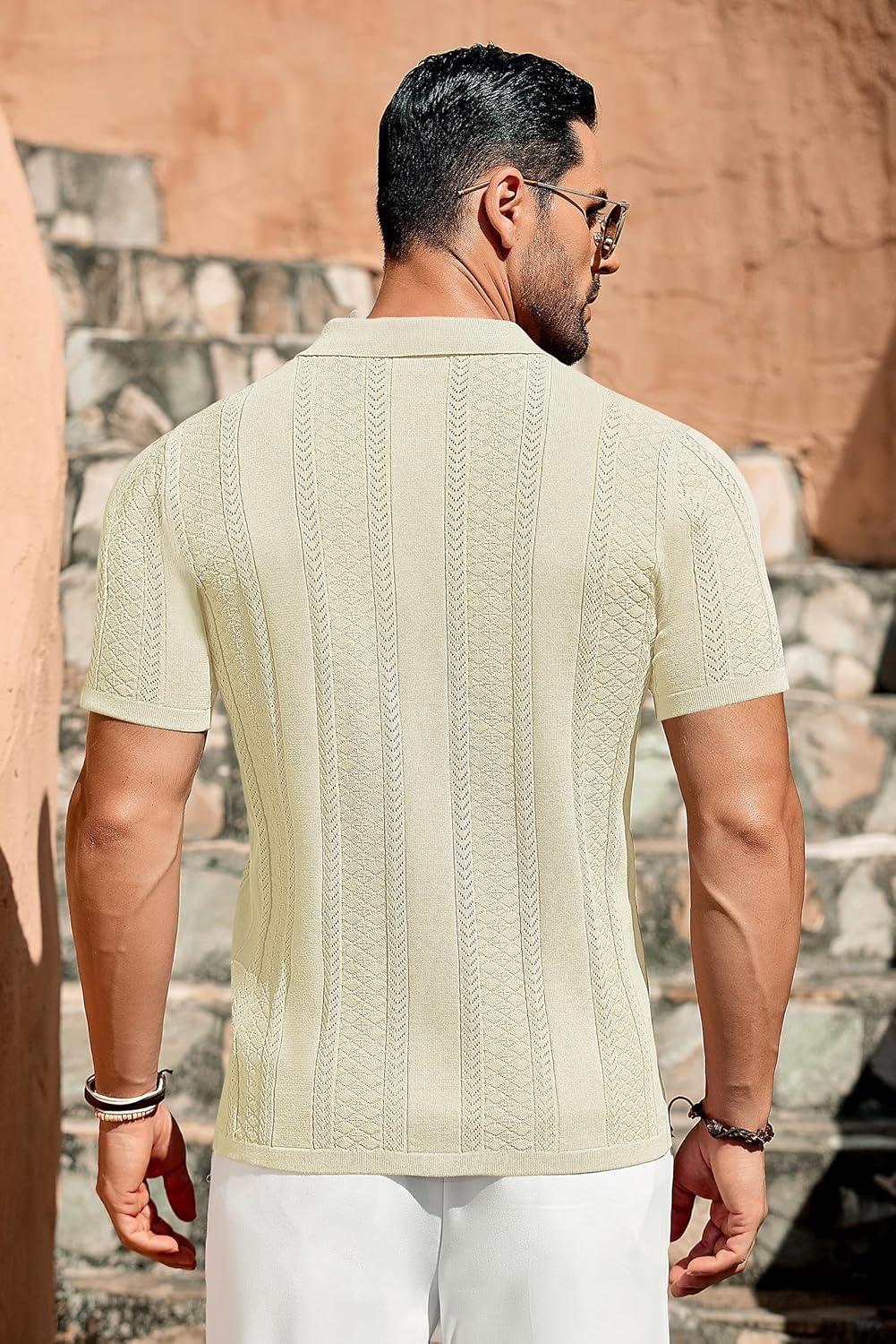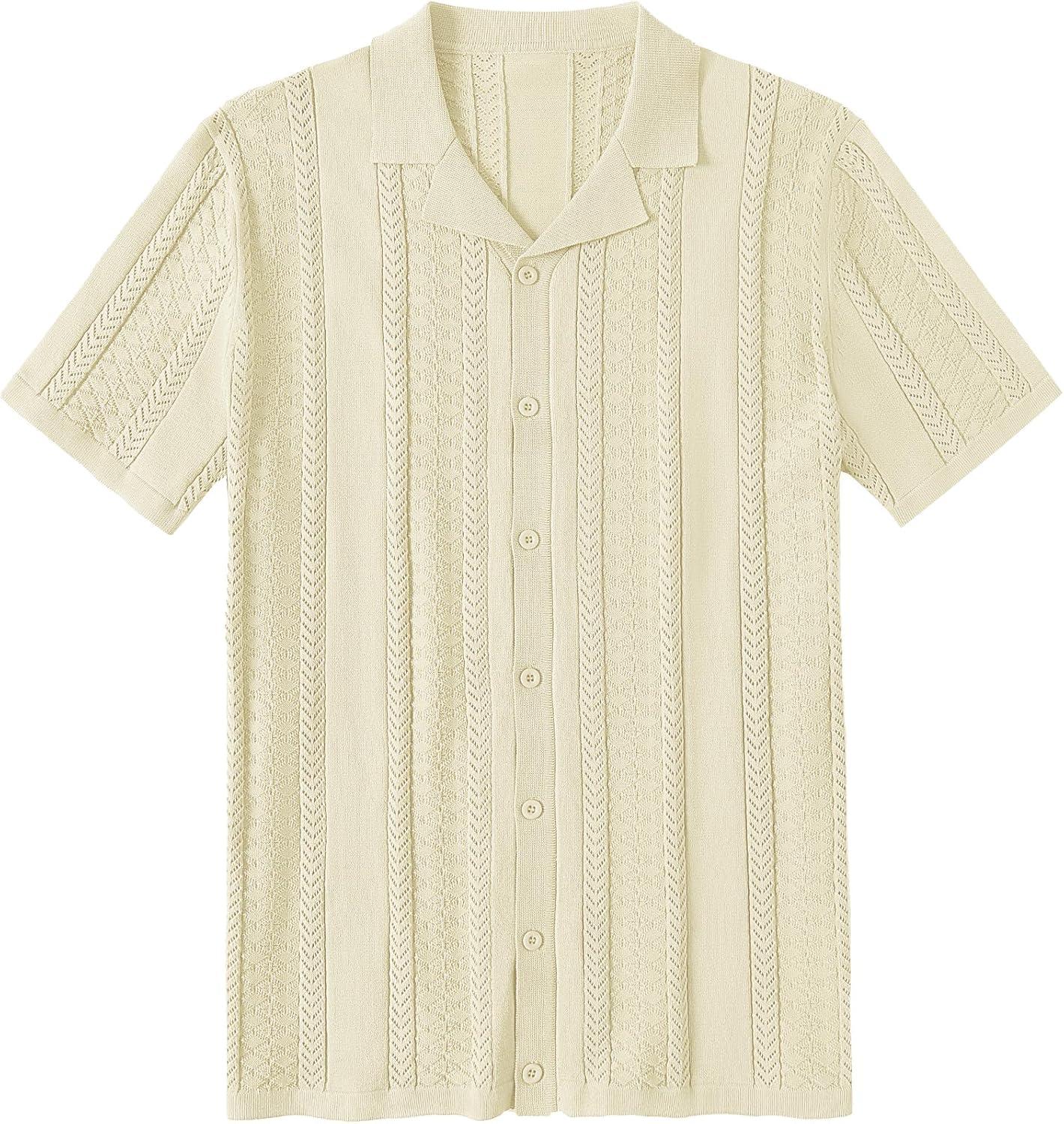 COOFANDY Men's Knit Shirts Vintage Short Sleeve Button Down Shirt Casual Summer Beach Shirt(Beige)